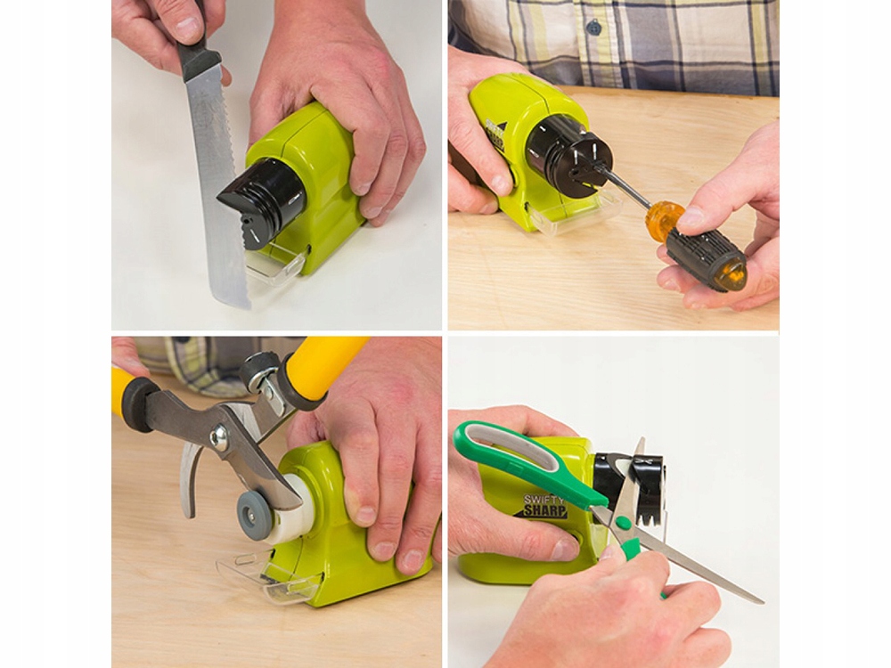 Якщо ви втомилися за допомогою тупого ножа, і ви дбаєте про час - всього кілька секунд , щоб заточити майже кожен тупий інструмент. Просто утримуйте перемикач пристрою/точинок, принесіть інструмент, який ми хочемо загострювати до голови пристрою, і через кілька секунд ми отримуємо ідеально загострені інструменти.