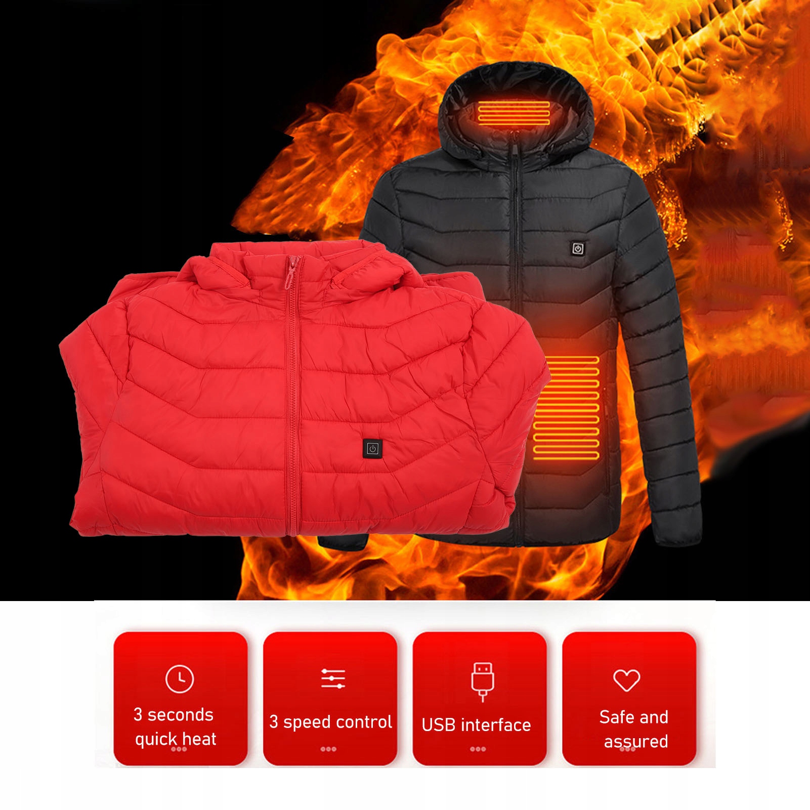 Пальто з капюшоном з електричним підігрівом, 3 температури, один контроль, 2 зони, термокуртка з підігрівом USB для чоловіків, жінок, чорна 3XL