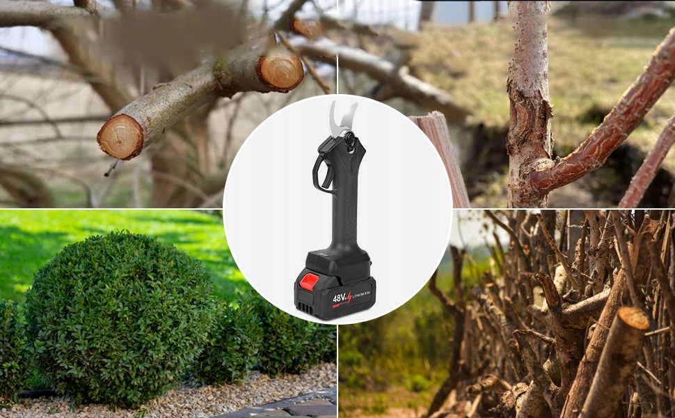 🍀Цей садовий електричний секатор має високоякісний, потужний безщітковий двигун і гострі, стійкі до іржі сталеві ножі SK5 для швидкого обрізання гілок.