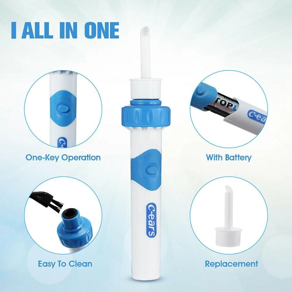 обережно вібрує і поглинає вологу та бруд, які у вас є у вухах. "Вакуумний очищувач для очищення вуха" виготовлений з пластику, що не містить BPA.