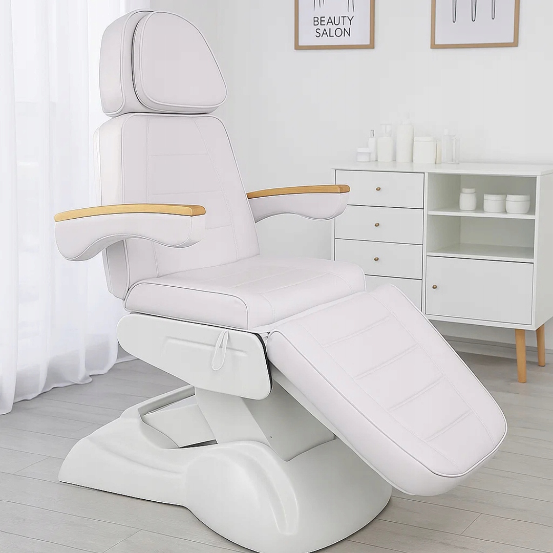 Різні можливості налаштувань крісла роблять його великим у багатьох галузях. За допомогою цього крісла ви будете виконувати обробки та прикрасити тіла та обличчя, використовуєте під час обробки та педикюру та використовувати його для масажу всього тіла або його вибраних частин. Матеріали Електричне косметичне крісло Lux Spa вигадує витонченість, піднімаючи атмосферу кожного офісу. Його наповнення та конструкція забезпечують клієнтам повне розслаблення під час косметичних процедур.