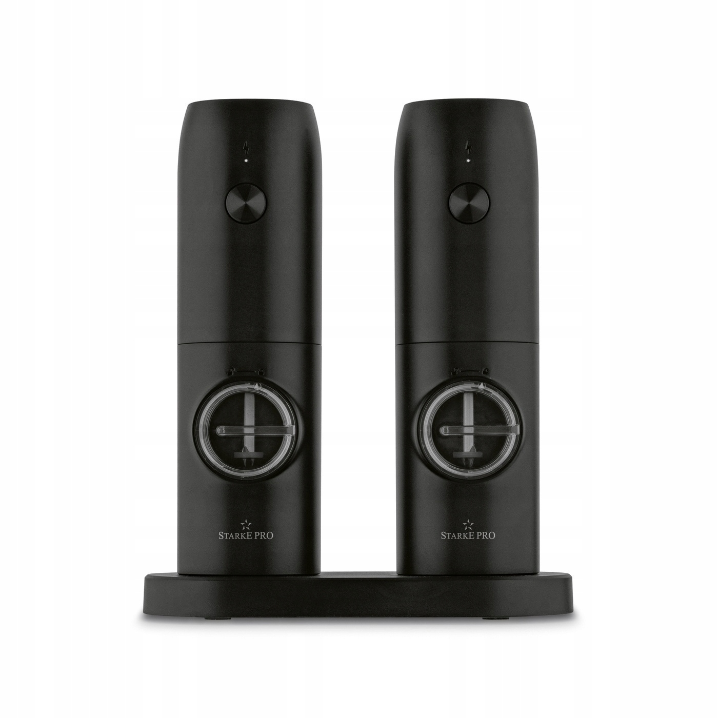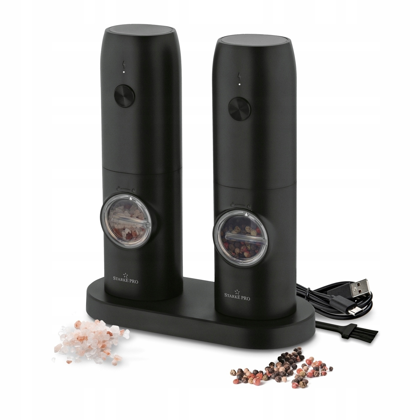 Дві електричні та гравітаційні млини Starke Pro Provis пропонують короткий час, щоб отримати потрібну кількість спецій. Набір також дає точне вимірювання меленого перцю та солі та здатність працювати однією рукою. Їх дизайн житла базується на елементах, виготовлених з пластику з атласною обробкою. Вони виглядають стильно і сучасно. Шліфувальники оснащені кнопкою для запуску механізму шліфування з електроживленням електроживлення, що працює від акумулятора. Ви можете легко перевірити кількість солі та перцю всередині і спланувати додаткову покупку (практичне, прозорого вікна). Вони також мають форму, яка добре вписується в руку. Ви будете зберігати невелику пряність для шліфування гігієнно. Частина набору - це також зарядна підставка та кабель USB типу C. Самі шліфувальні машини Parvis забезпечують безпечне очищення та наповнення спецій у своїх контейнерах. Кисть для очищення żaren також була додана до набору.