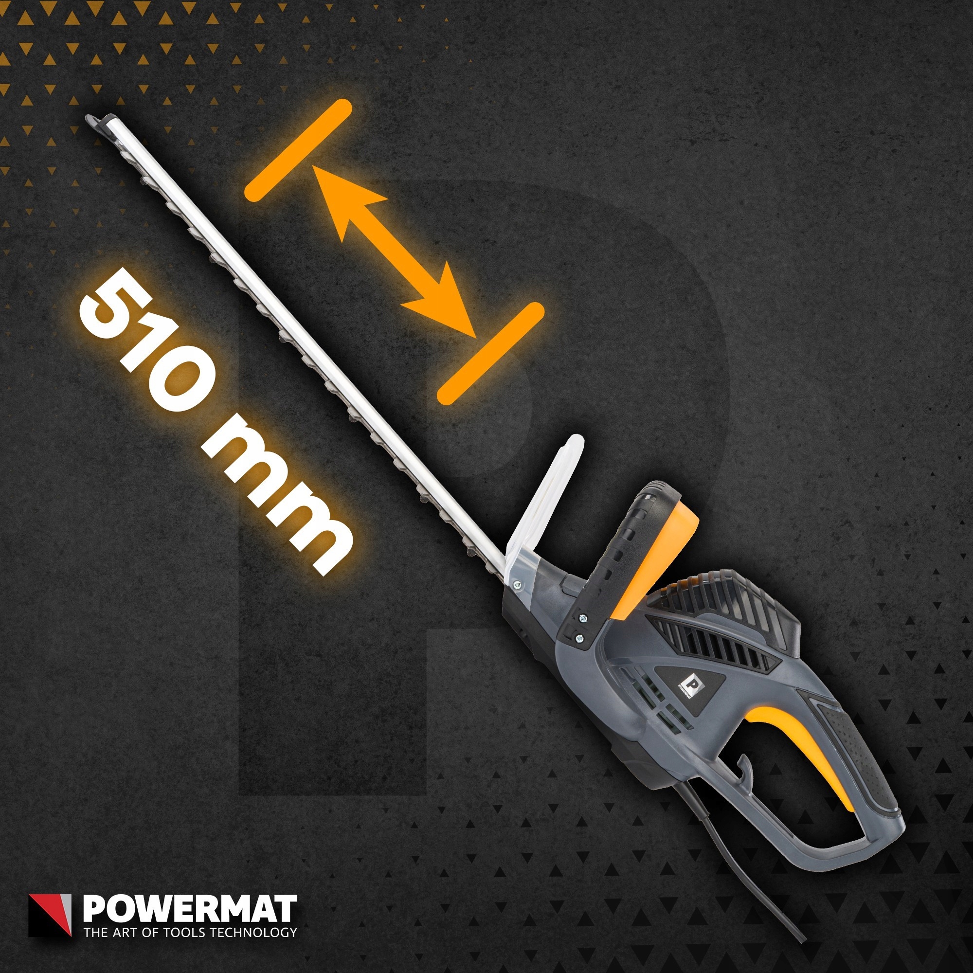 Електричні ножиці Powermat PM-NE-1600M з високоякісним лезом високої вуглецю. Ефективний електродвигун з потужністю 1600 Вт дозволяє різати густі гілки з максимальною шириною різання - близько 20 мм.