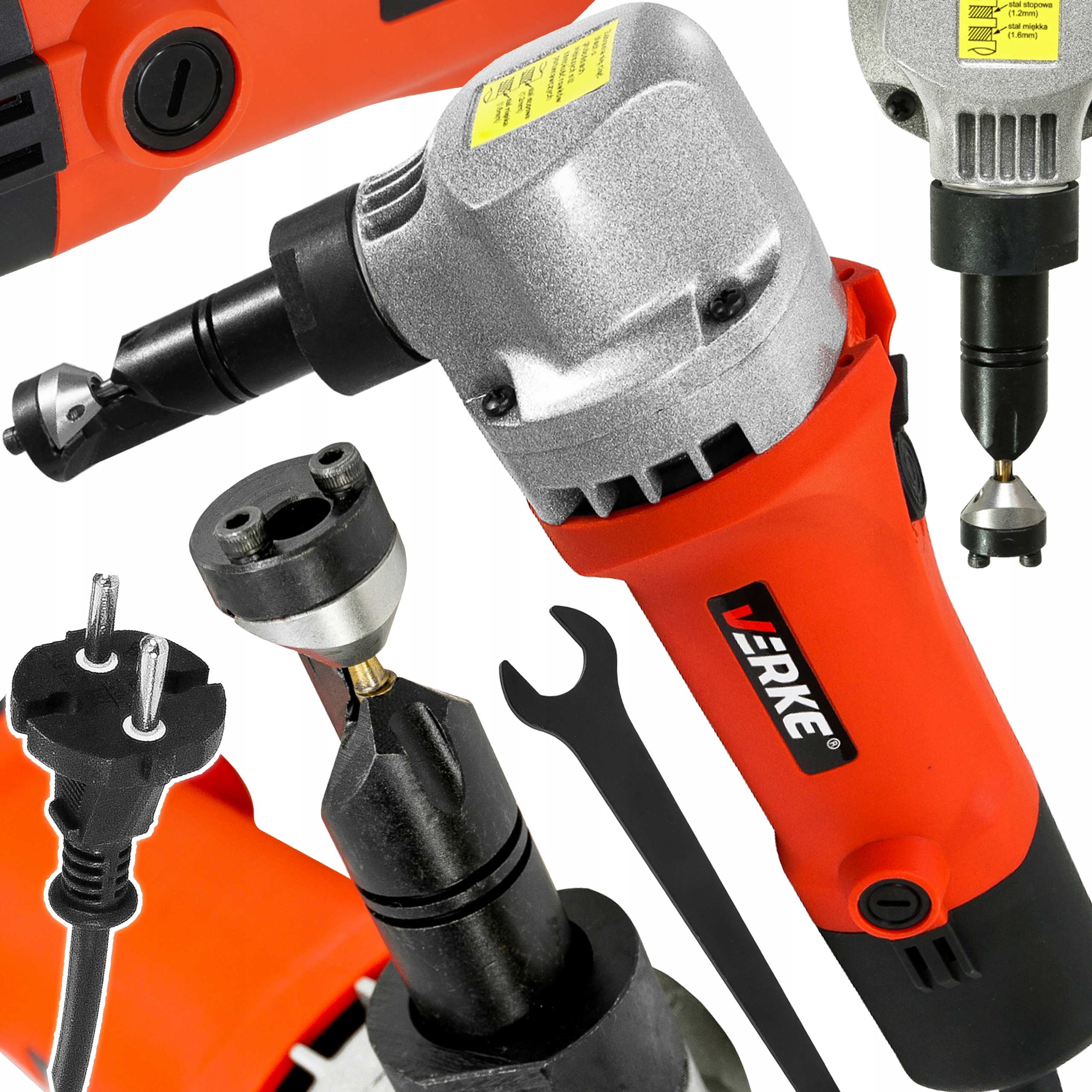 Міцні та зручні ножиці VERKE є ідеальним пристроєм для кожного ентузіаста DIY. Висока якість виготовлення забезпечує тривале і безпроблемне використання ножиць. Ефективні ножиці для різання плоского, гофрованого, трапецієподібного листового металу або черепиці. Потужний двигун потужністю 1500 Вт дозволяє різати м'яку сталь до 1,6 мм і леговану сталь до 1,2 мм. Ножицями також можна різати алюмінієві та мідні листи товщиною до 1,6 мм. Пристрій має можливість регулювання ріжучої головки на 90° вліво і вправо, що збільшує сферу його застосування. Невеликий діаметр ріжучої головки дозволяє робити надрізи у важкодоступних місцях. У набір входить ріжковий ключ для регулювання і налаштування матриці, шестигранний ключ і запасні щітки.