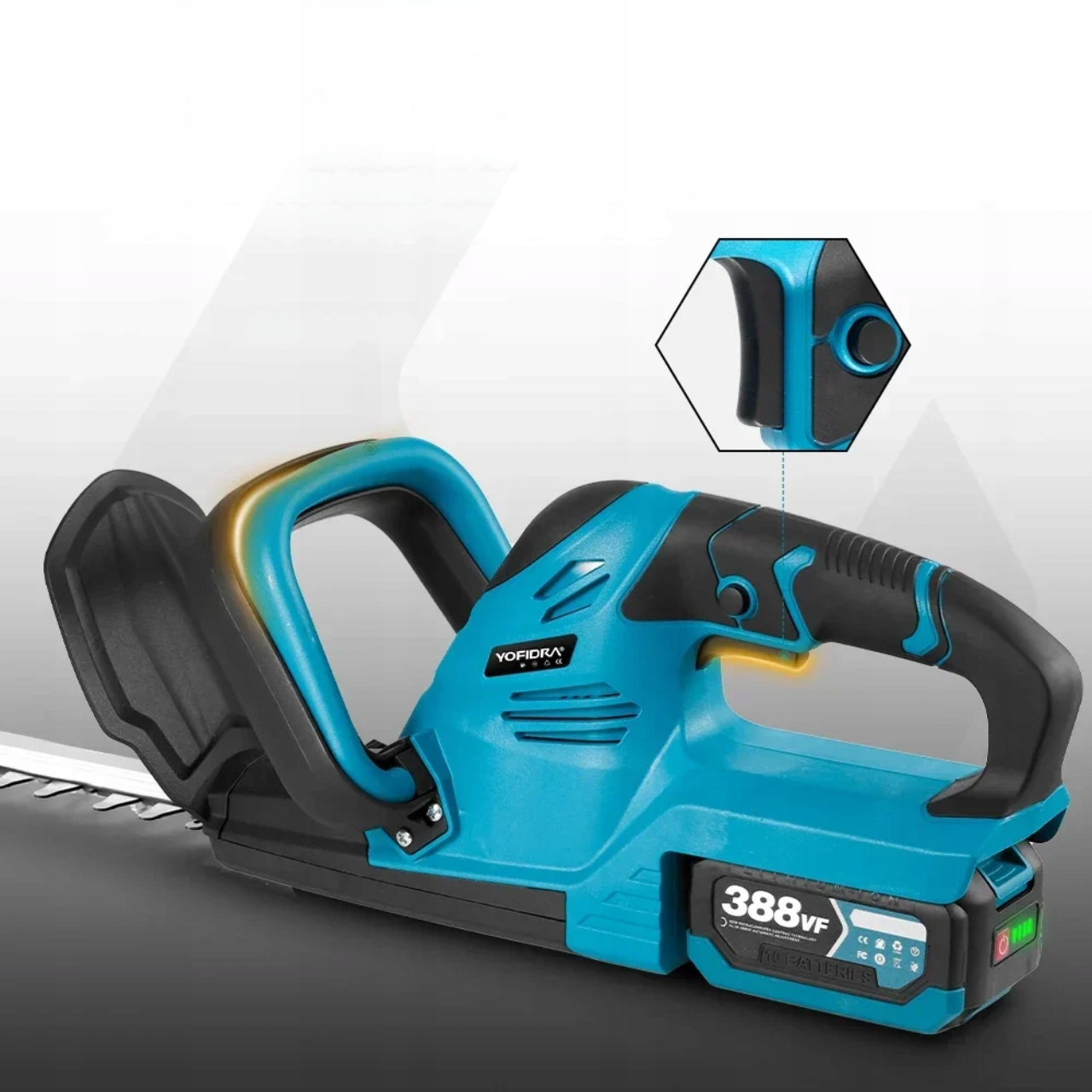 Електричні ножиці для Yofidra 22in 2000w Yofidra - бездротовий, сильний інструмент догляду за садом. довжина леза 510 мм, регульована 90 ° голова, сумісність з акумулятором Makita 18V , високоякісним лезом SK5. Ідеально підходить для живоплотів, кущів та трави. Купуйте зараз і подбайте про свій сад!