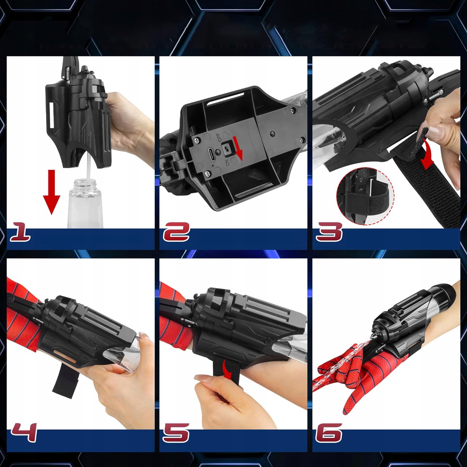 ЕЛЕКТРИЧНІ ПИСТОЛЕТИ ІГРАШКА ВОДОСПРИСЛЮВАЧ З РУКАВИЧКОЮ ЛЮДИНИ-ПАВУКА 220MAH