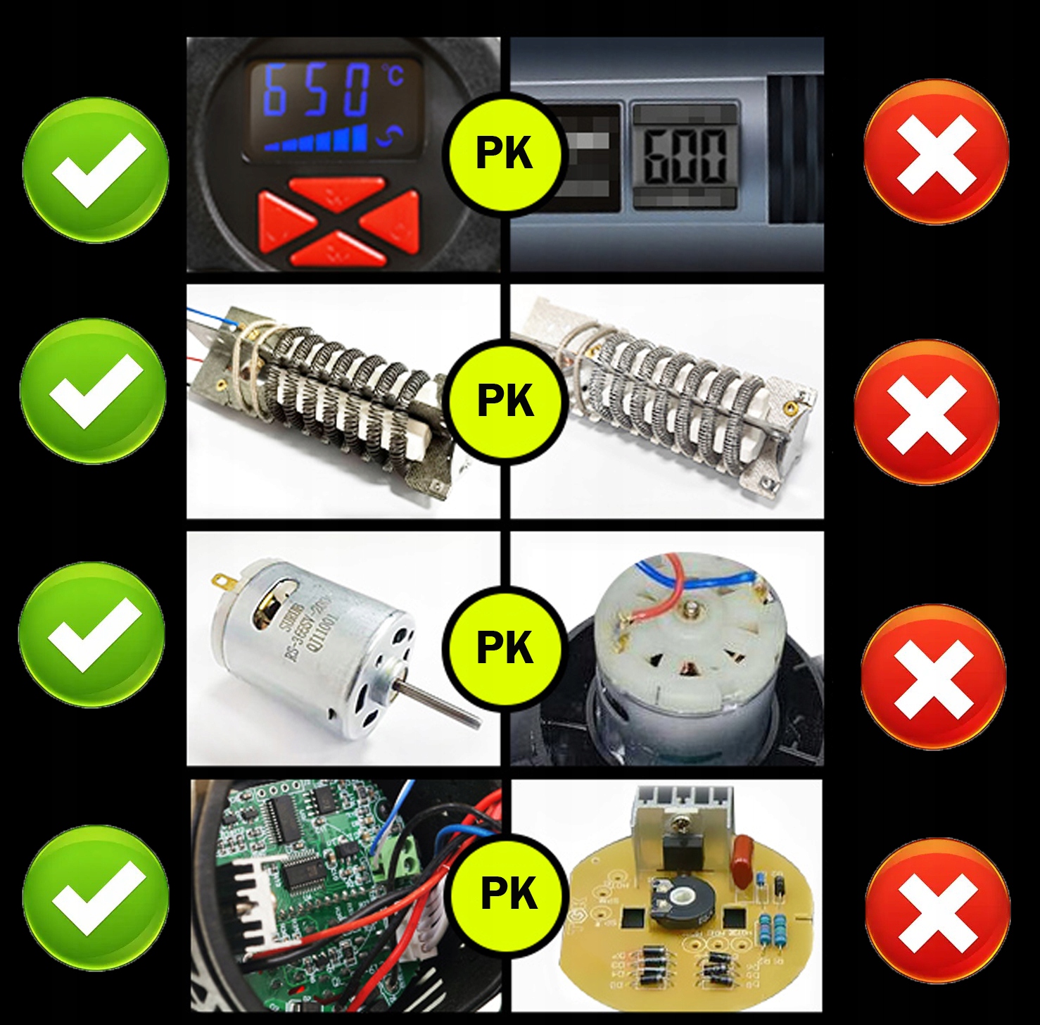 Цей тарі має синій РК -екран з високою роздільною здатністю, який чітко відображає поточну температуру та потік повітря, навіть у темряві, що дозволяє в режимі реального часу. Діапазон регулювання температури в реальному часі становить 60 ~ 650 ° C.