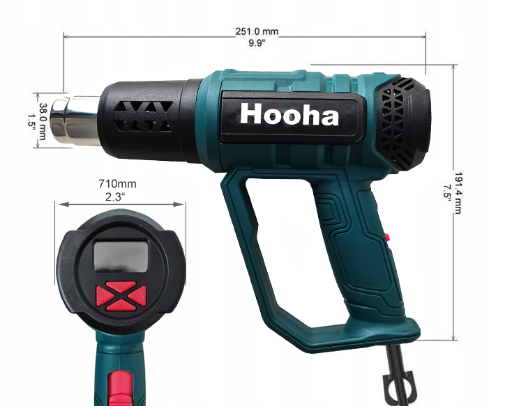 Цифровий дисплей Hooha пропонує точне управління температурою для різних проектів, що потребують певного рівня тепла. Різні температури та об'єм потоку повітря роблять його ідеальним інструментом опалення для ремесел та саморобних завдань вдома.