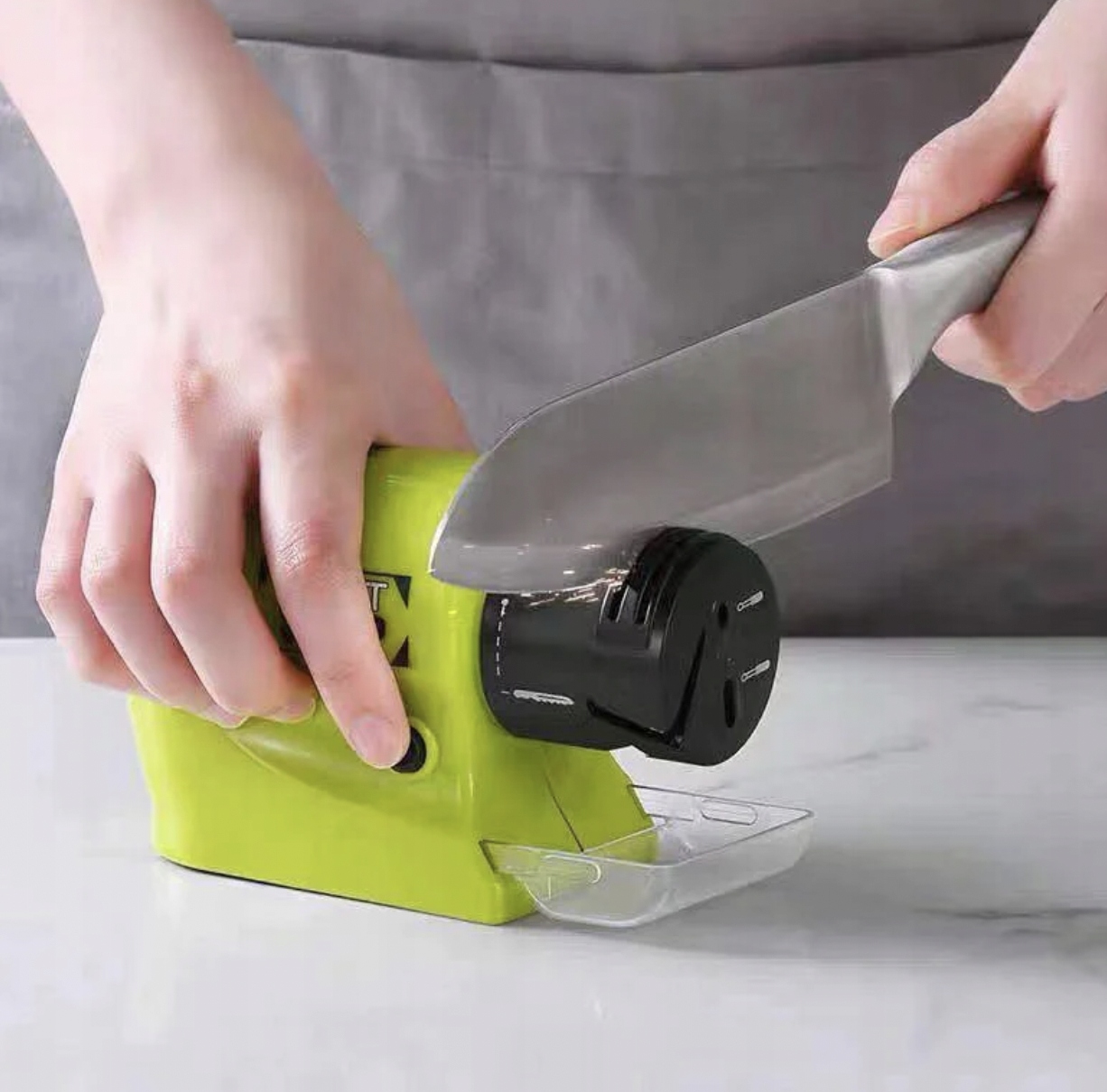 Увімкніть пристрій і піднесіть лезо ножа до голови. Через кілька секунд лезо буде як нове. Точило дозволить точити не тільки ножі, а й ножиці та викрутки.