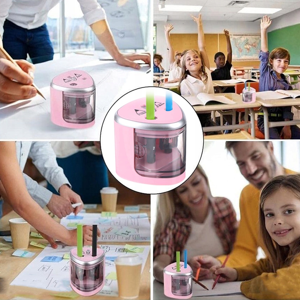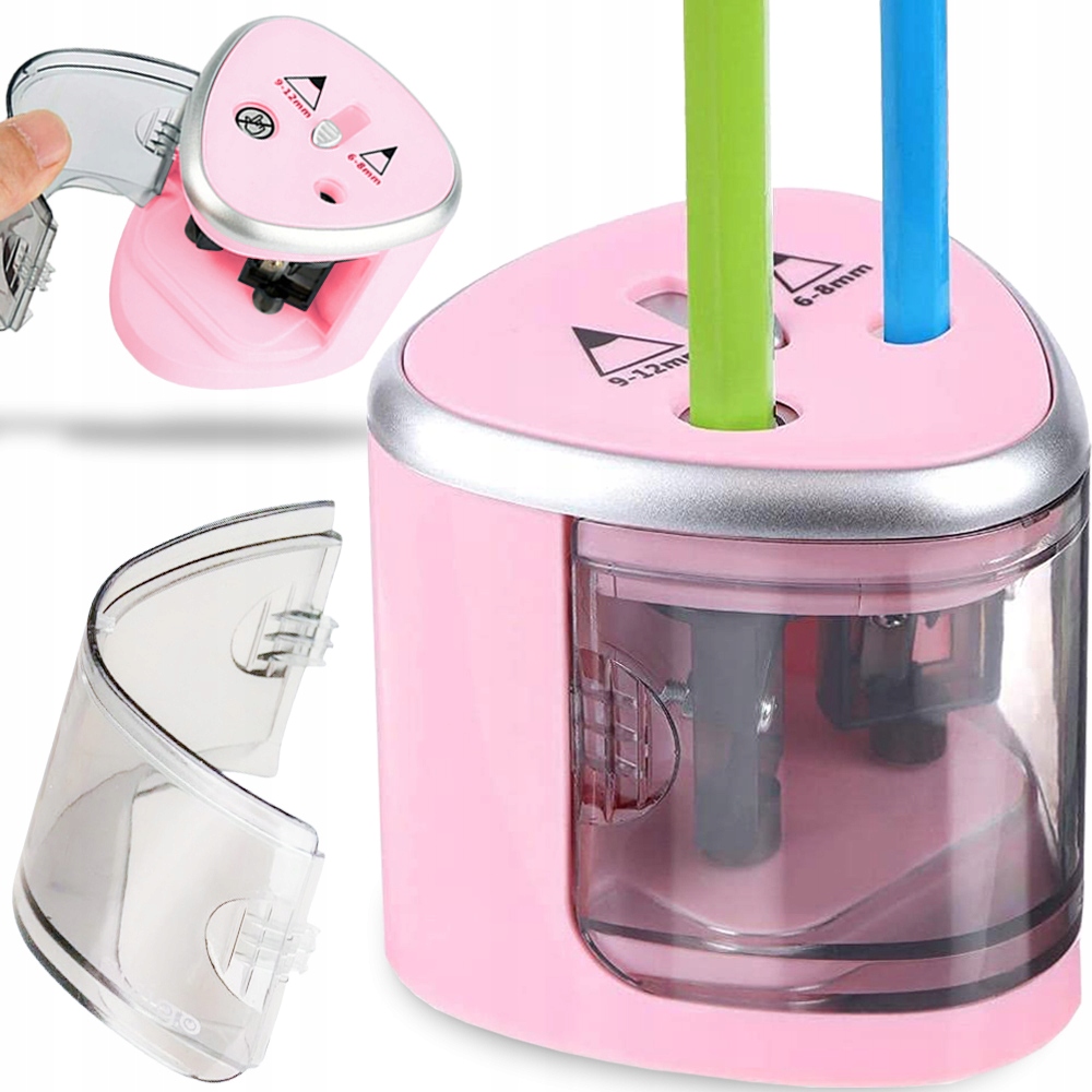 електричні мелодії оснащені двома отворами, які дозволяють заточувати олівці та олівці діаметром 6-8 мм і 9-12 мм. Завдяки цьому вам не доведеться турбуватися про відповідність інструменту з різними розмірами ваших маркерів. Це рішення робить його надзвичайно універсальним, ідеально підходить як для офісу, так і в художній студії, де використовуються різні типи олівців та олівців.