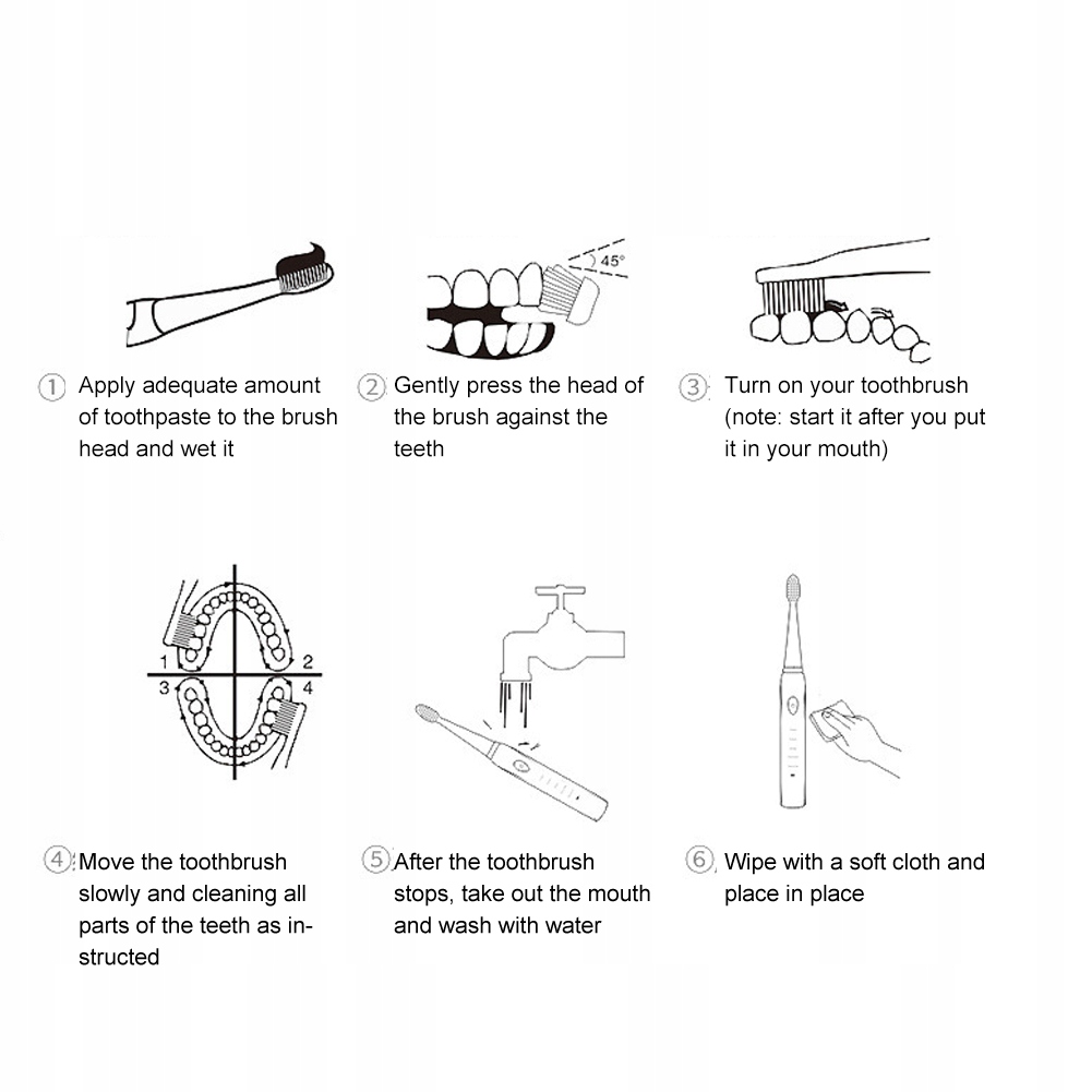 3. Розділіть ротову порожнину на чотири ділянки для стійкого очищення та нагадайте, щоб замінювати одну область кожні 30 секунд.