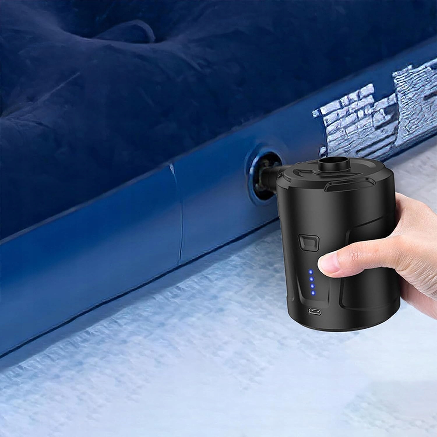 🫧🫧 【довгий джерело живлення та зарядка через USB】 - електричний акумуляторний насос має вбудований літій -акумулятор з ємністю 5200 мАг, що забезпечує більш тривалий робочий час. Доданий USB -зарядний кабель можна використовувати з будь -яким пристроєм, оснащеним інтерфейсом USB, наприклад, автокріслом, комп'ютером або банком живлення, завдяки якому він зручніший під час літніх подорожей.