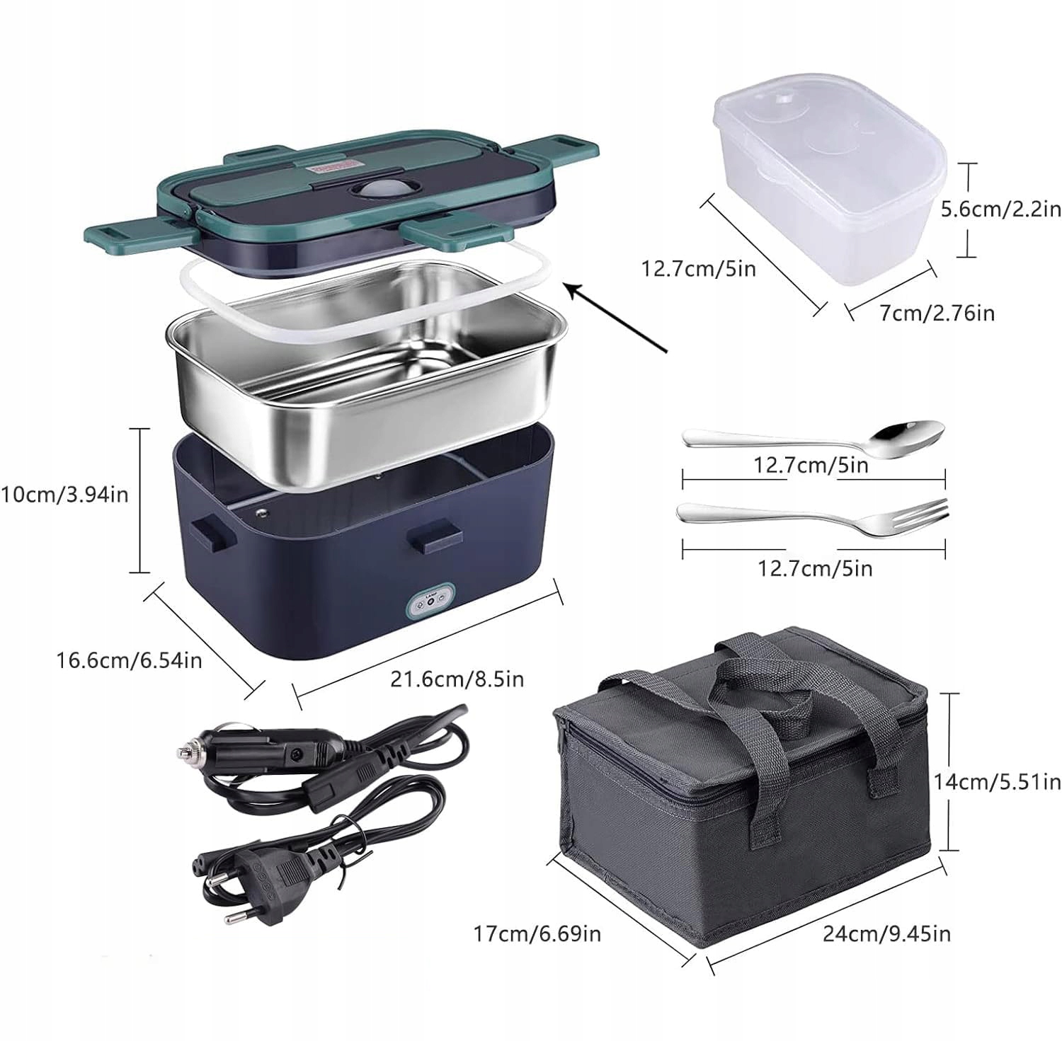 ЕЛЕКТРИЧНИЙ 2IN1 Контейнер для обіду, контейнер для їжі, 1,8 л, 12 В/24 В/220 В