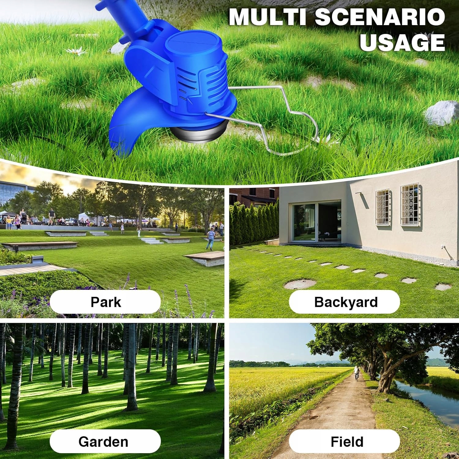 Багатофункціональний інструмент газону, не тільки вирізати траву, але й чудово справляється з бур’янами, товстішими кущами та гілками.