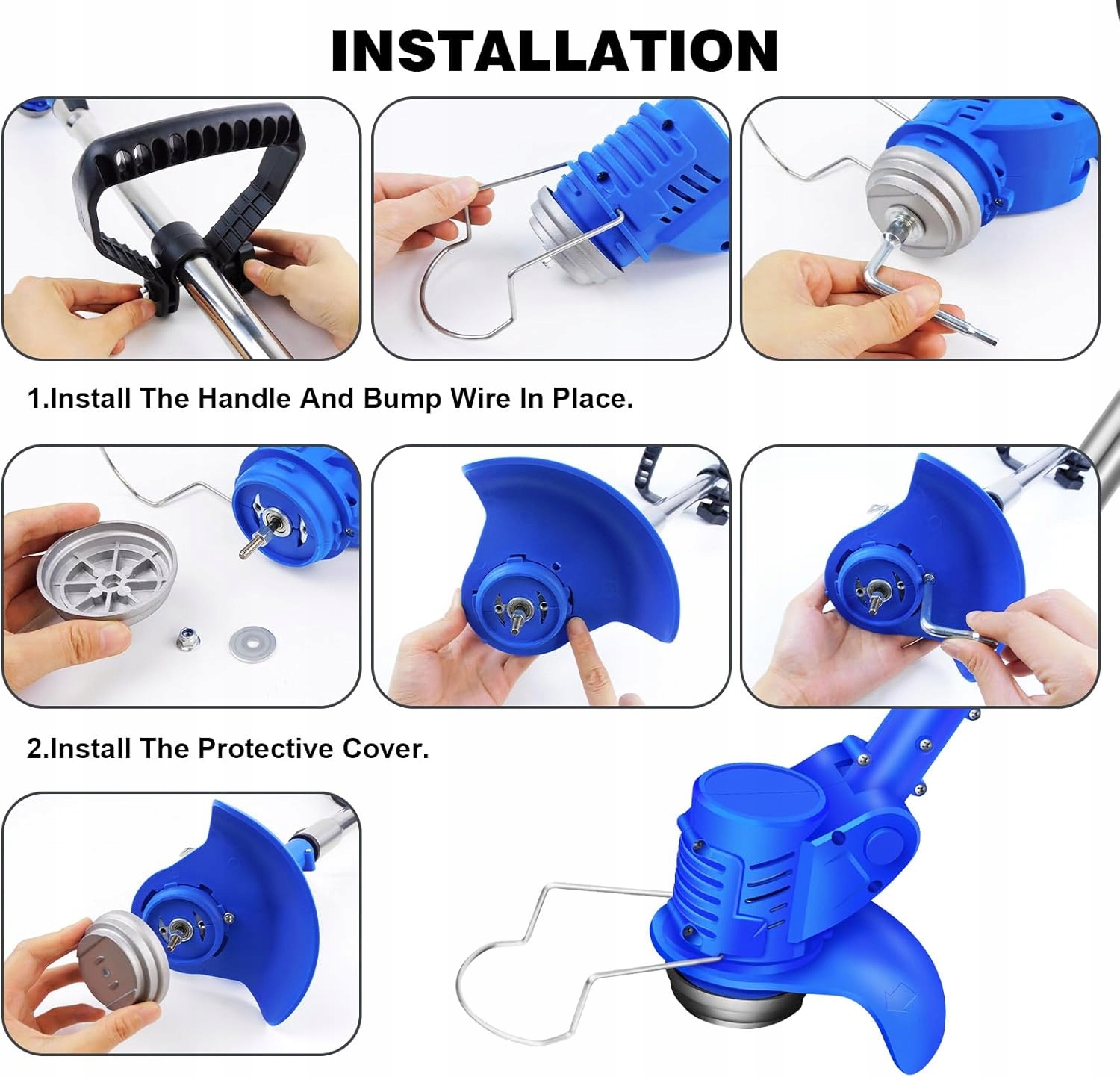 - Регульована ріжуча головка та структура безпеки: Електричний стриммер має ріжучу головку з обертанням 0-90 °, що підходить для більшості різних кутів складної роботи. Анти -кліканна карбонація заліза захищає робоче лезо від пошкоджень, коли воно торкається твердих каменів або стін. Захисне покриття на 150 °, який може ефективно запобігти траві, робить скошування безпечнішим.