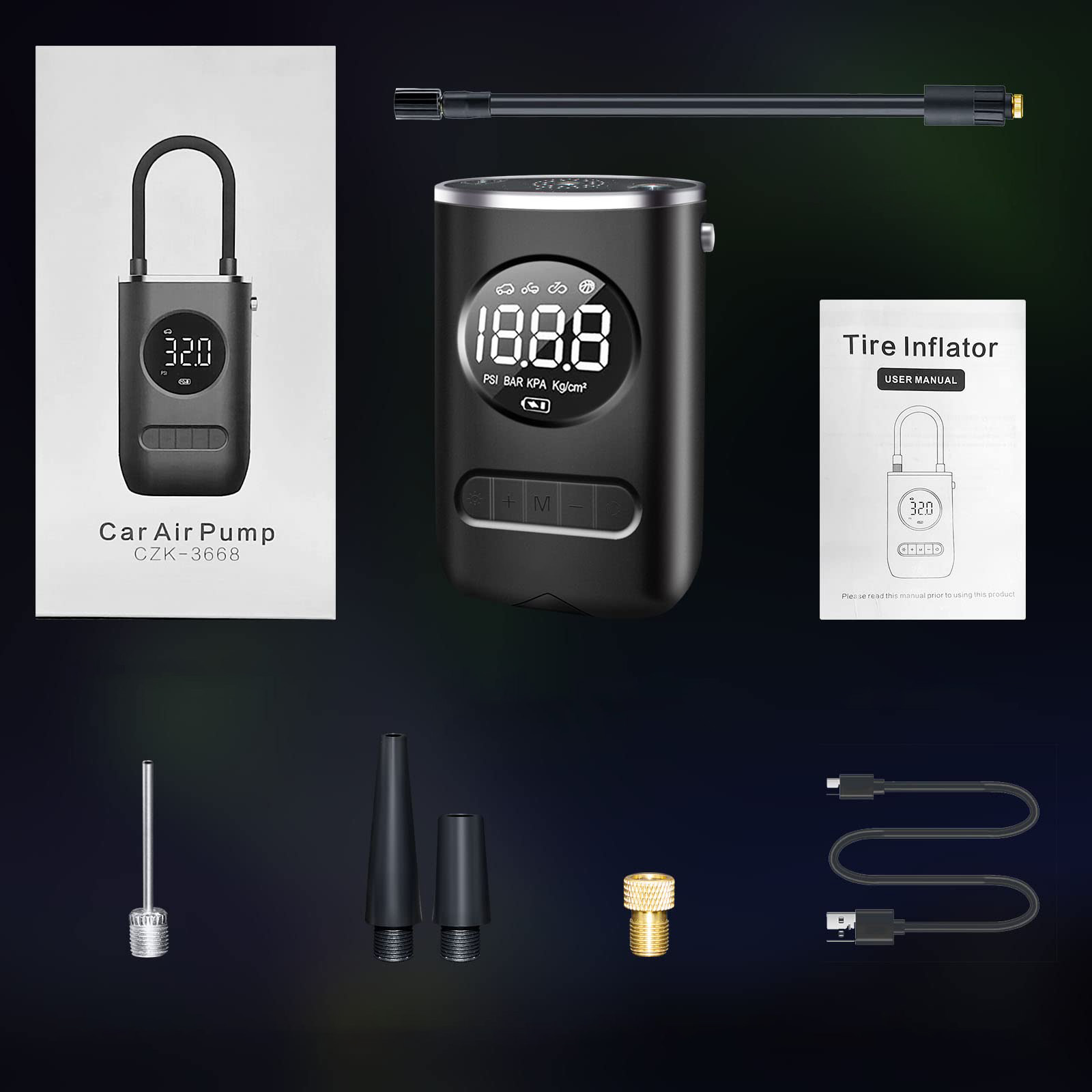 ✅Простий у використанні: повітряний насос має чотири попередні -встановлені режими, які також можна регулювати вручну. Коли він досягає встановленого значення тиску, він автоматично зупиниться та вимкне живлення. Уникайте прихованої небезпеки надто високого чи надто низького тиску в шинах і переконайтеся, що ваша подорож буде безпечною.