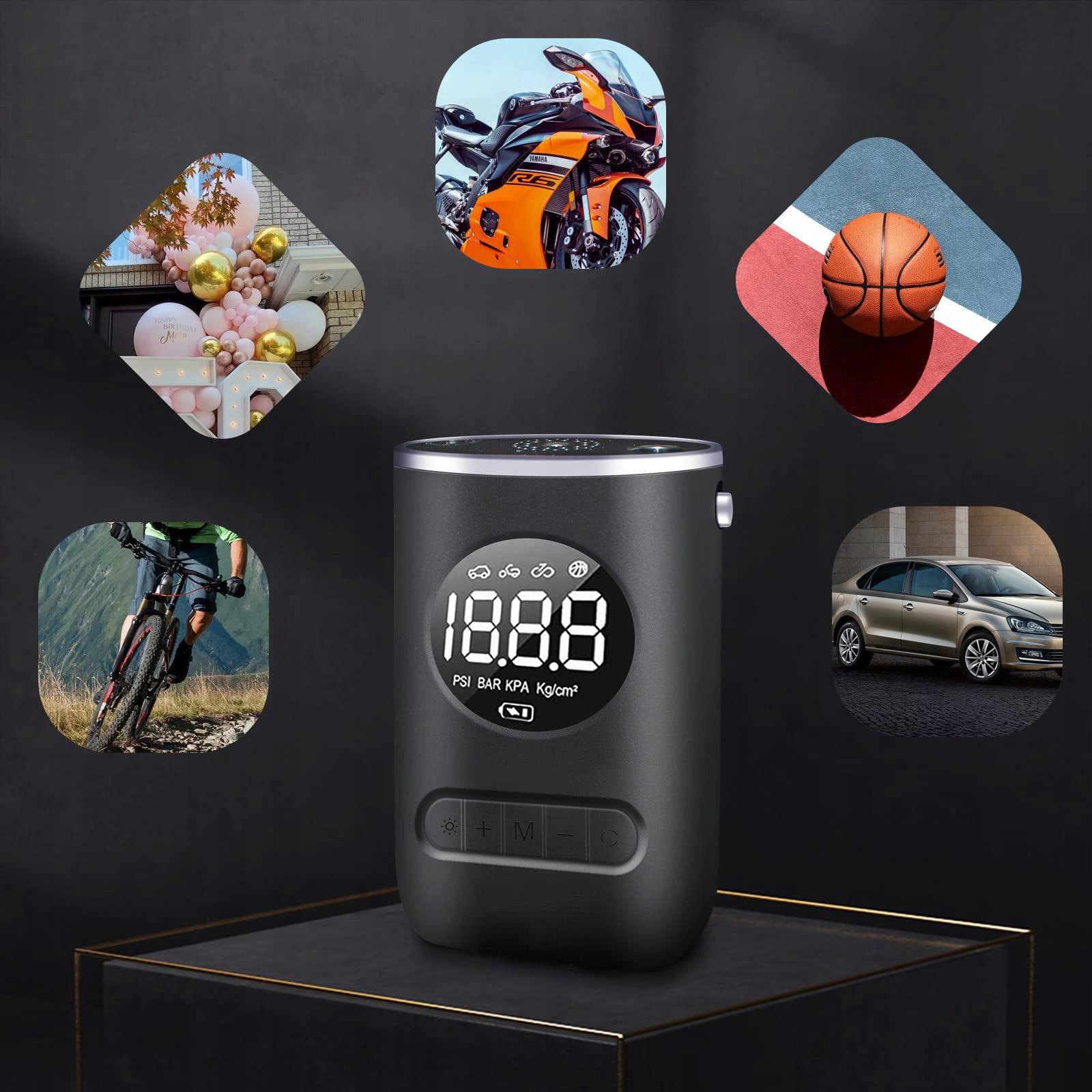 - Функція: вимірювання тиску в шинах, накачування, освітлення