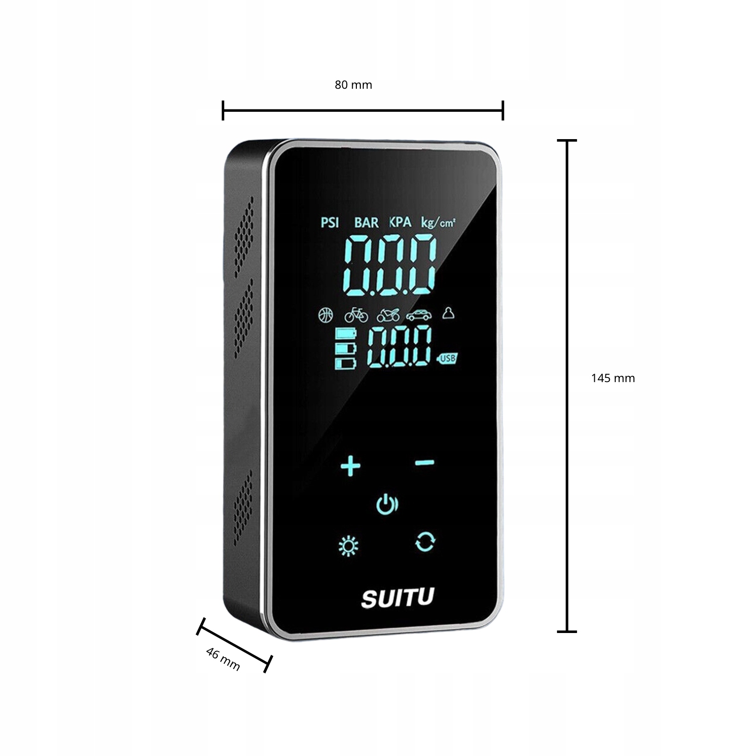 чотири режими насосів: для автомобілів, мотоциклів, велосипедів та кульок. Це дозволяє працювати в темних умовах і збільшує безпеку користувача. Точний датчик тиску, що дозволяє ретельно перевірити тиск у шинах та інших надувних предметах.