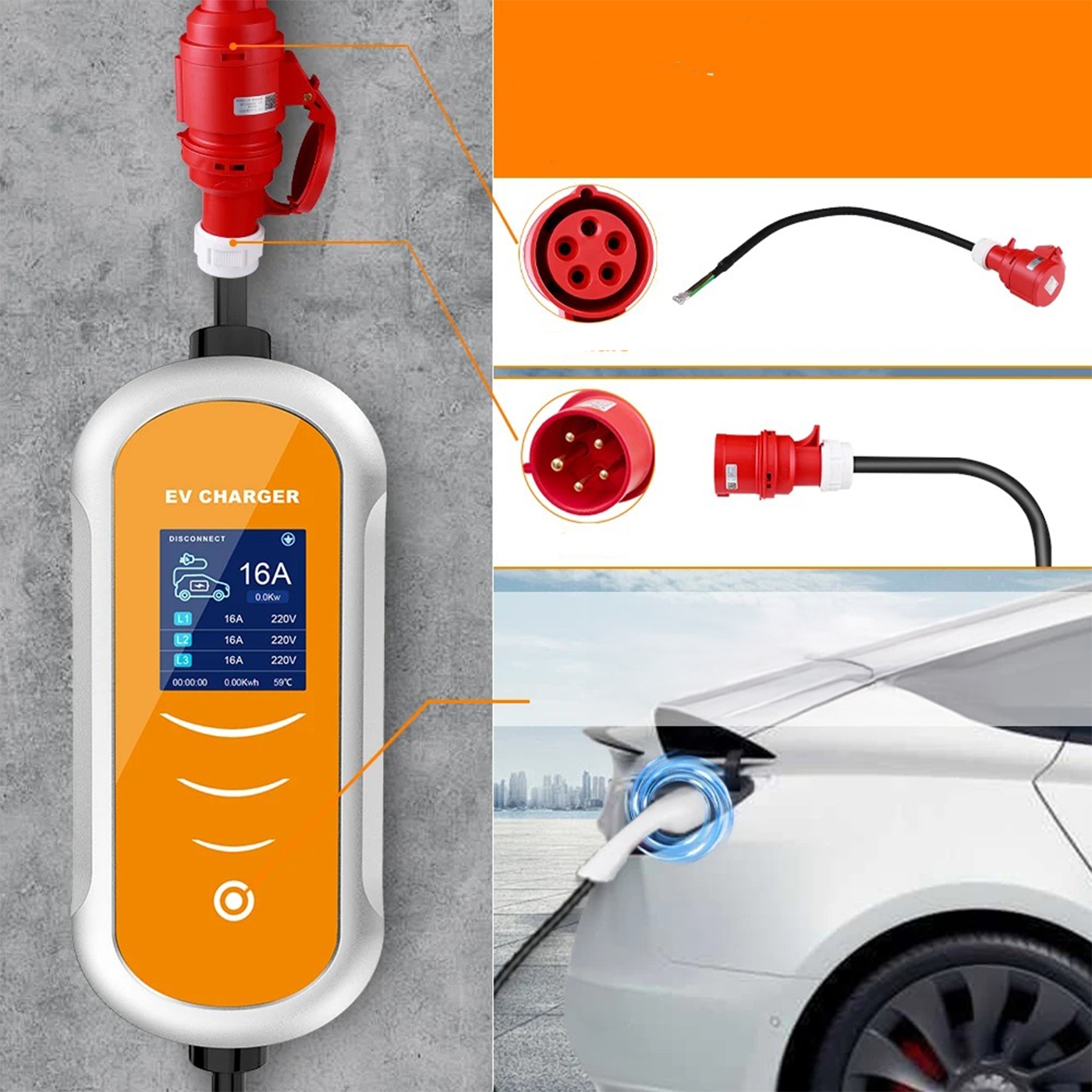 Електричний автомобільний зарядний пристрій 11 кВт, 16 A, тип 2, IP65, 3-фазне джерело живлення