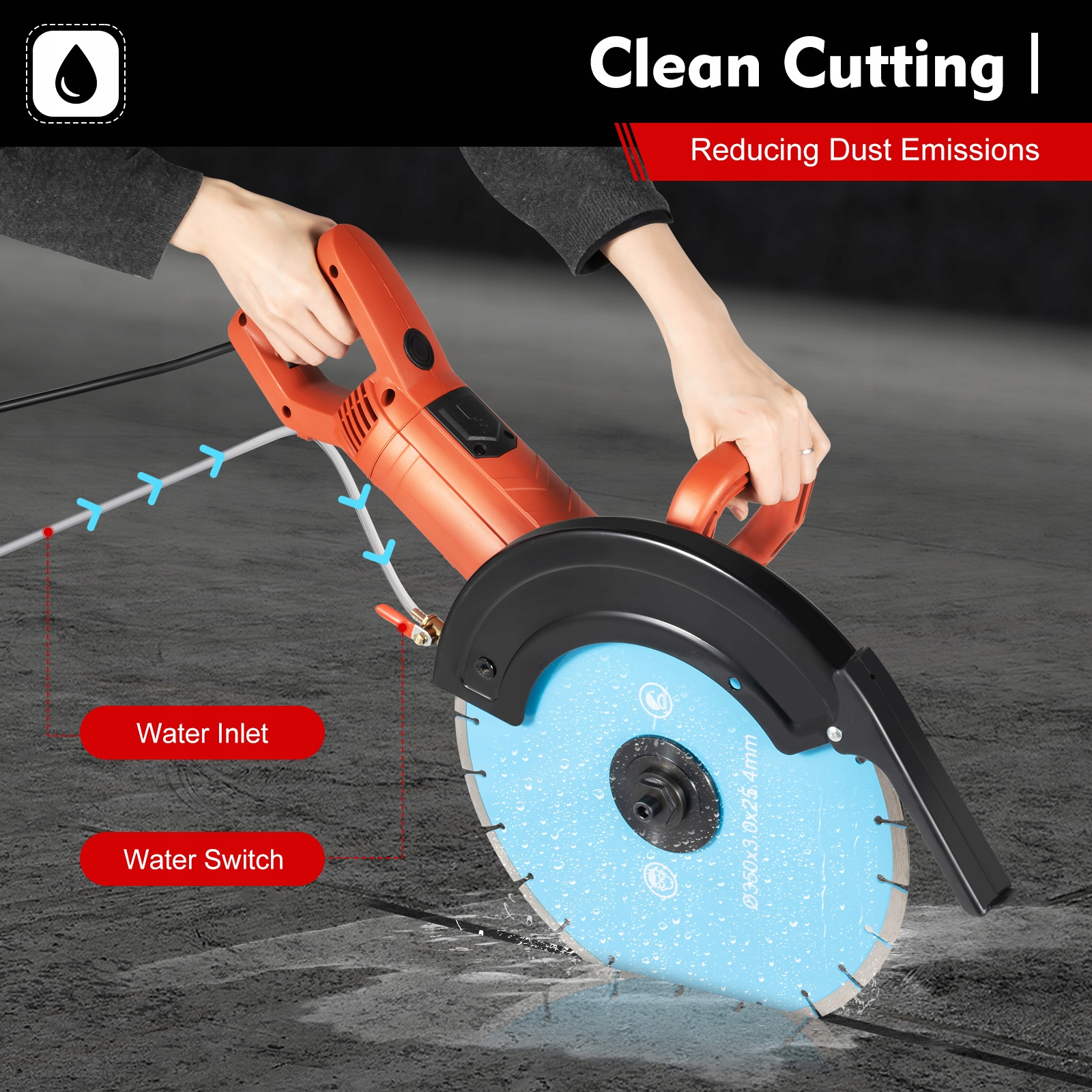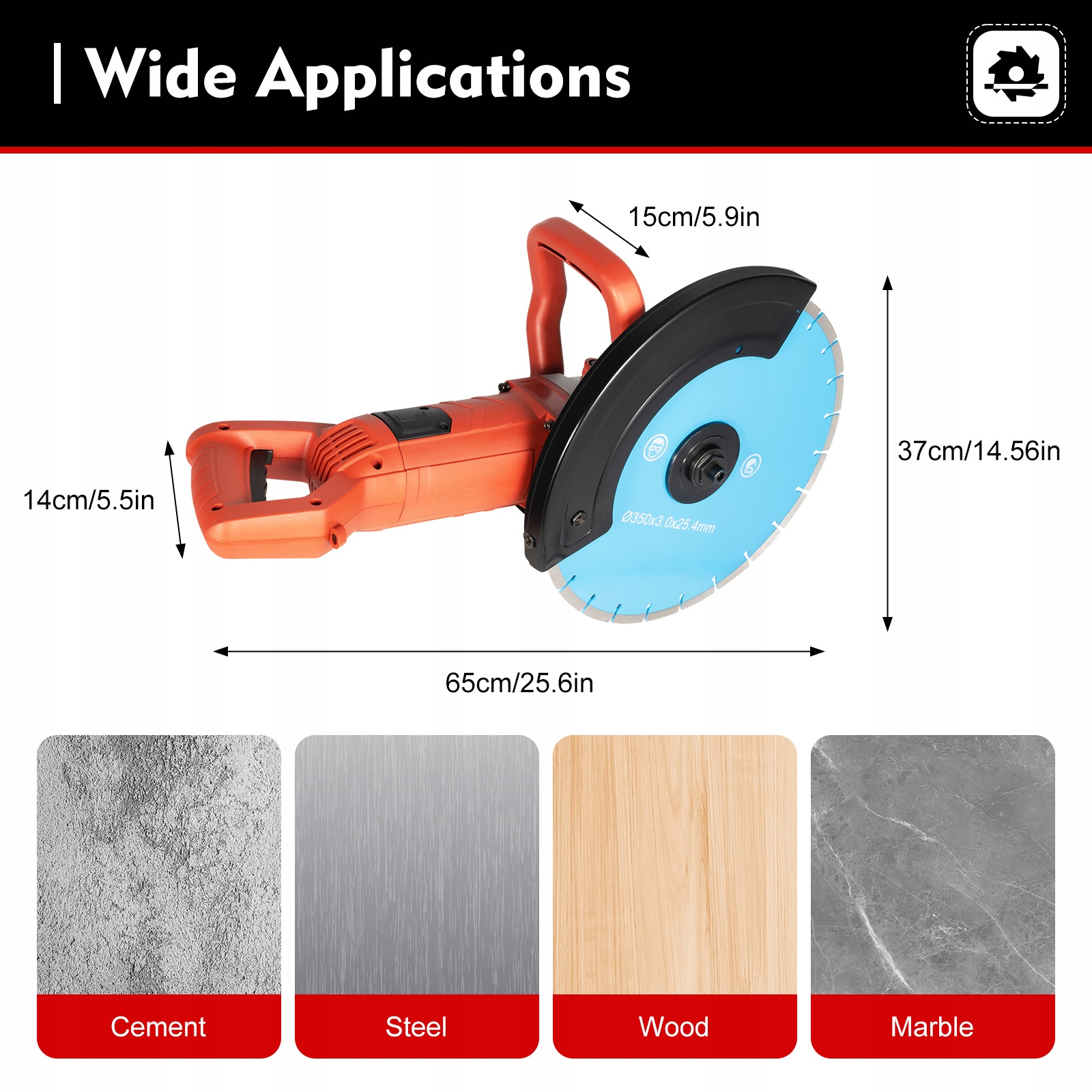 ✅ Високоефективний: З високою швидкістю до 3800 об/хв і гостре алмазне лезо, ця електрична пила 3000 Вт для бетону може легко проникати в плитку, бетон, цеглу та інші будівельні стіни на високій швидкості, значно підвищуючи ефективність роботи.