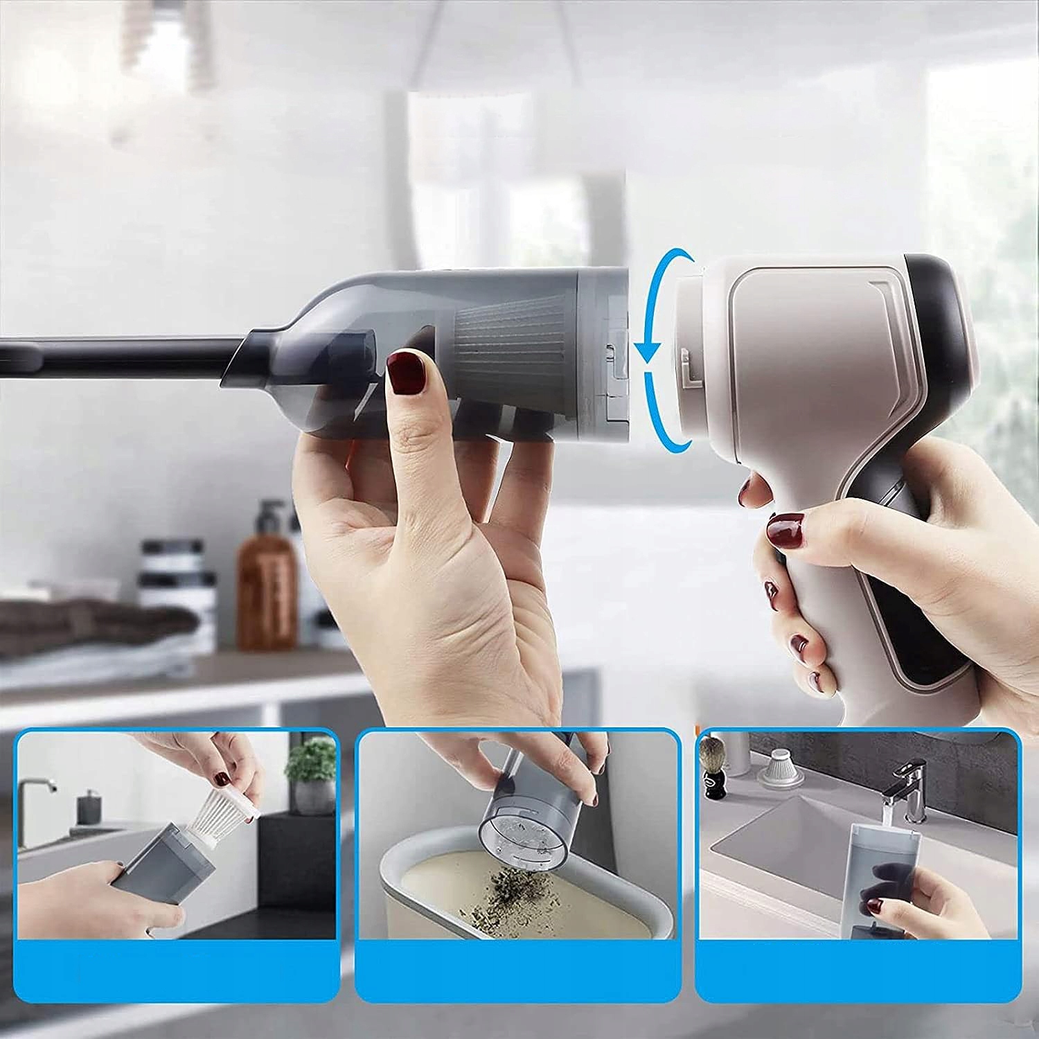 Цей бездротовий автомобільний пилосос забезпечує найшвидше та найглибше прибирання, з легкістю видаляючи котячий туалет , шерсть домашніх тварин, пил, сміття тощо. У ручному пилососі використовується високоефективний двигун потужністю 120 Вт. Він використовує надпотужний двигун з високою потужністю всмоктування. Рівень шуму менше 75 дБ. Регулярне прибирання дуже корисно.