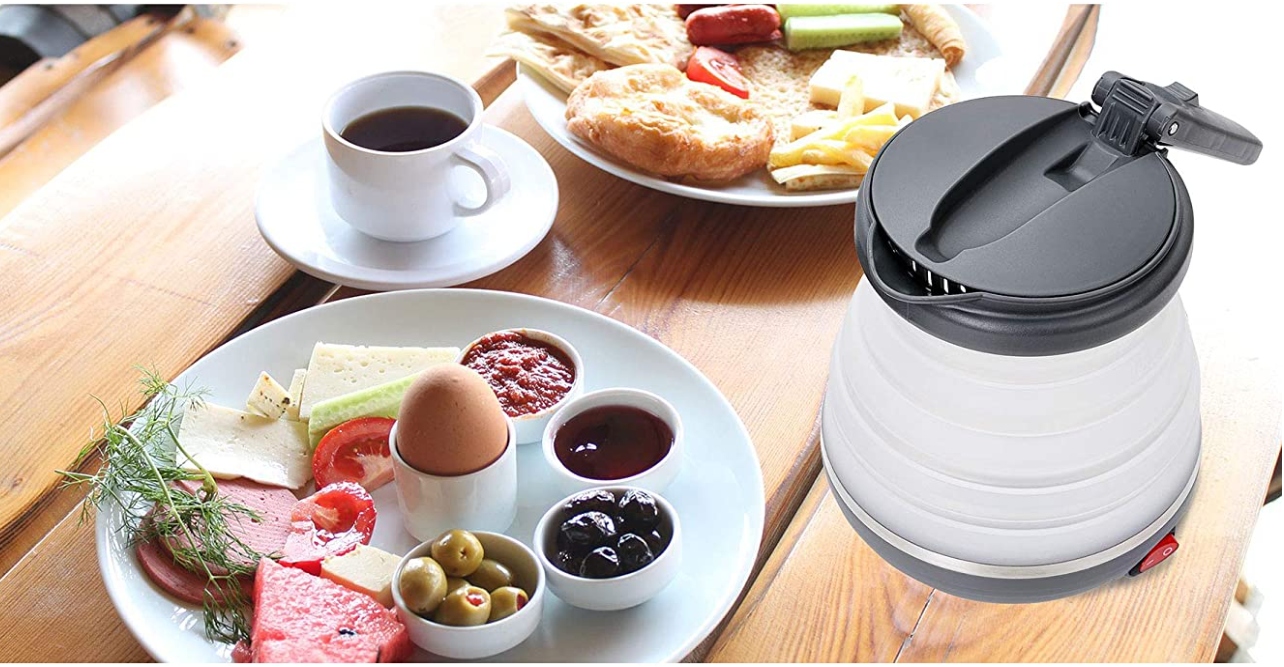 Те, чого ви не очікуєте, коли думаєте про чайник, - це силікон, складний корпус, який змушує чайник зайняти дуже мало місця. Компактні розміри, міцний матеріал і низька вага - це дуже великі переваги, які роблять чайник в будь -який багаж навіть руки або рюкзака. Крім того, після складання ви можете зберігати його в шафі або ящику, що забезпечить цінне місце на кухонному прилавку, наприклад, у невеликому причепі чи кемпері. Широка кришка отвору дозволяє зручно вилити та очищати воду. Всередині корпусу встановлюється великий круглий сталевий нагрівач. Просто налийте потрібну кількість води, увімкніть кнопку, щоб розмістити 1, а коли червона лампа освітлюється, управління, розміщеного в вимикачі, чекайте кипіння води. Функціональність у чистому вигляді! Додатковою перевагою цієї моделі чайника є спокійна операція та невелике споживання електроенергії, лише 750 століття.