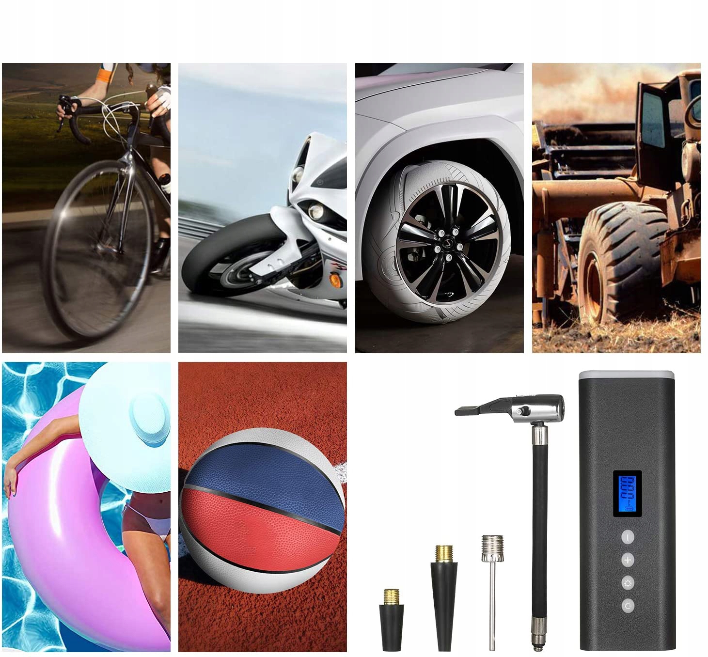 Цей портативний електричний насос можна використовувати для автомобільних, велосипедних шин, м’ячів, плавальних кілець та іграшок.