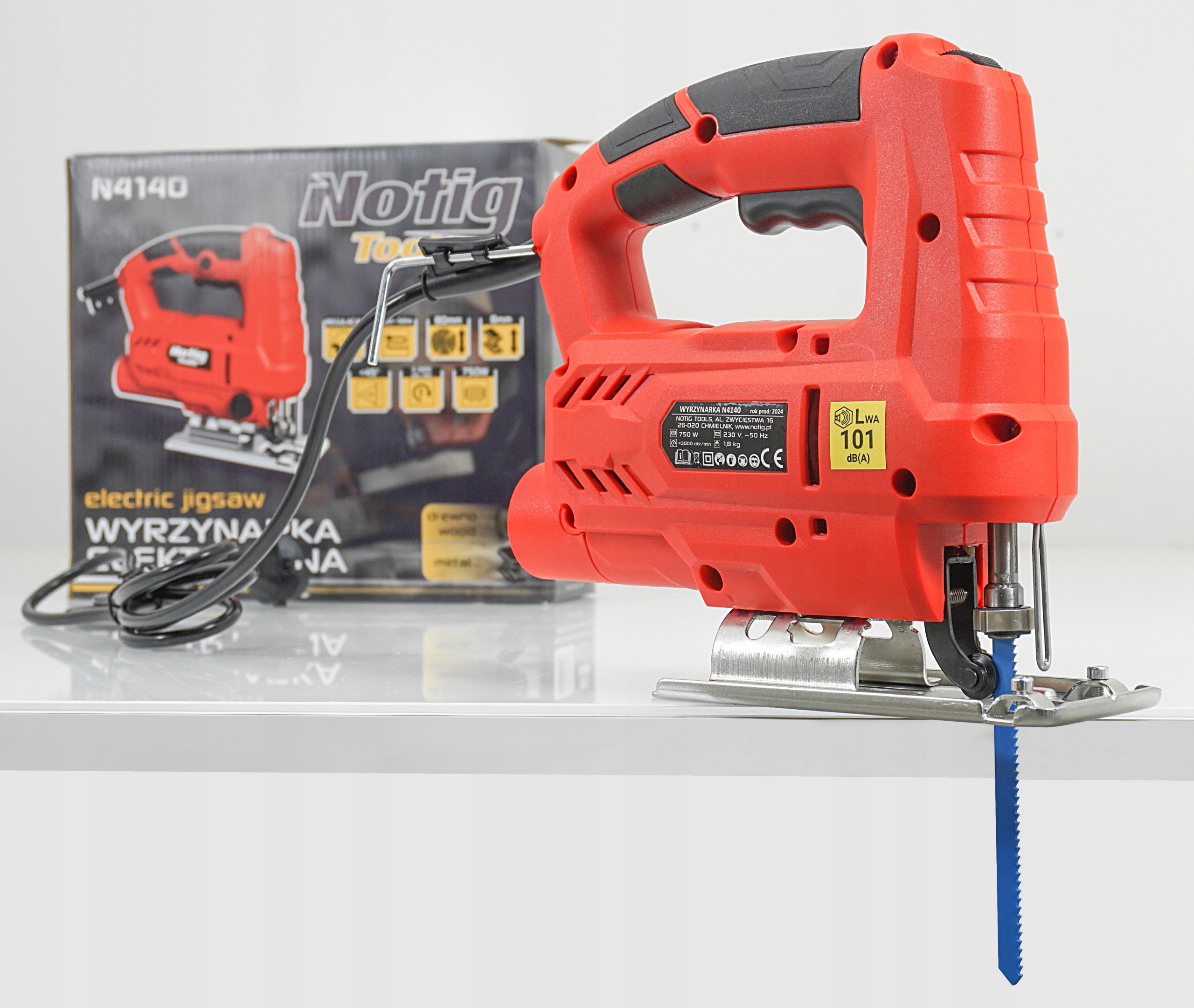Джигсова була створена з найвищої якості матеріалів, щільно прихованих у міцному, ергономічному корпусі з некосліповою ручкою, завдяки якому пристрій, ймовірно, лежить в руці та забезпечує комфорт використання