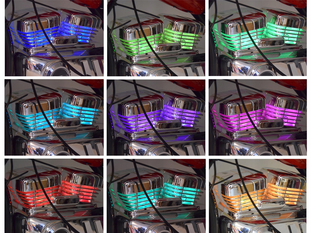 При відтворенні музики циліндри сяють барвистим світлом, що блимає до ритму музики. Дві кнопки розташовані з циліндра: