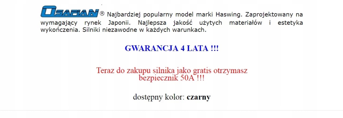 За декілька років присутності на польському ринку HasWing довів, що двигуни цієї марки асоціюються з якістю, міцністю та довговічністю, тому вони є двигунами, які найчастіше купують на нашому ринку. Вони мають професійне гарантійне та післягарантійне обслуговування, а також доступ до оригінальних запчастин, що забезпечує ефективну роботу протягом багатьох років.