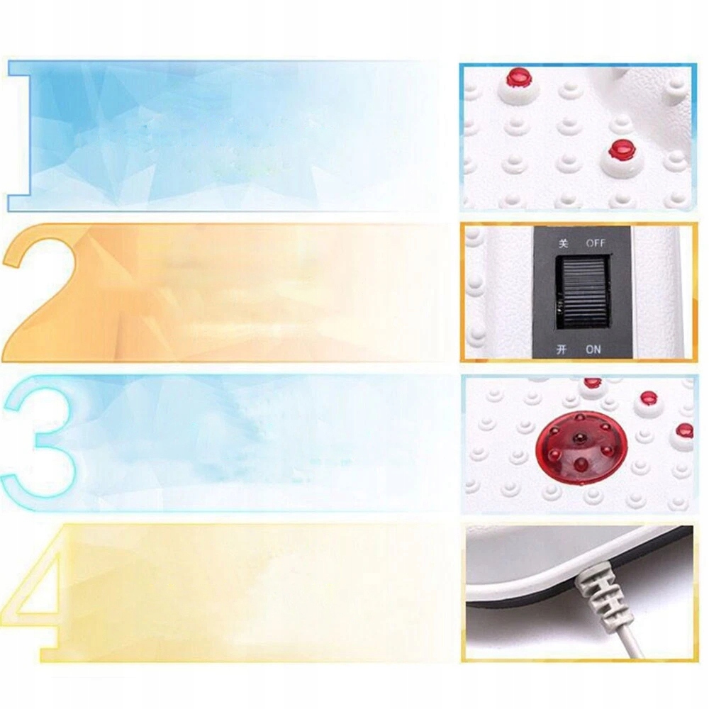 Щоб не пошкодити масажер для ніг, не наступайте безпосередньо на пристрій. Користуючись масажером, сядьте і покладіть на нього ноги. Будь ласка, допускайте різницю в 1-3 см (0,4-1,18 дюйма) через ручне вимірювання та невеликі відмінності кольорів залежно від налаштувань дисплея.