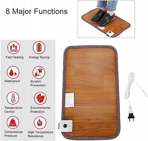 - 【нагрівальні ноги】 - це високоякісний електричний нагрівальний килимок. Супер тонка конструкція, рівномірно розподіляє тепло на поверхні землі. Потепліть своє тіло, а не повітря в кімнаті. Ваше тіло безпосередньо поглинається в теплі нагрівального килима. Температура до приблизно. 50 ° С. Виготовлення високої якості з появою дубового дерева. Бруд, плями та волосся можна легко видалити.