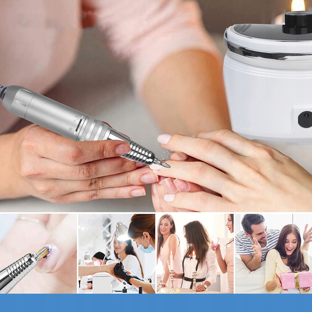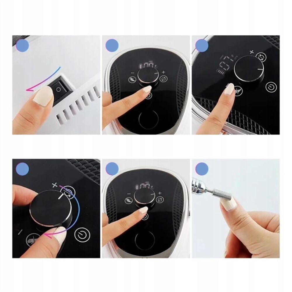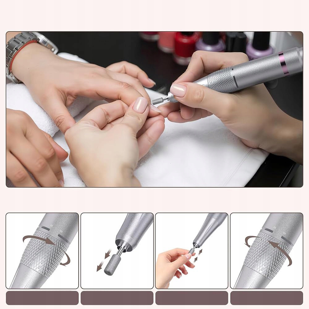До 35 000 обертів за хвилину: оснащено потужним двигуном, який забезпечує надзвичайно високі оберти за хвилину, забезпечуючи тривалий термін служби. Насолоджуйтесь гладким манікюром із мінімальним шумом і вібрацією.