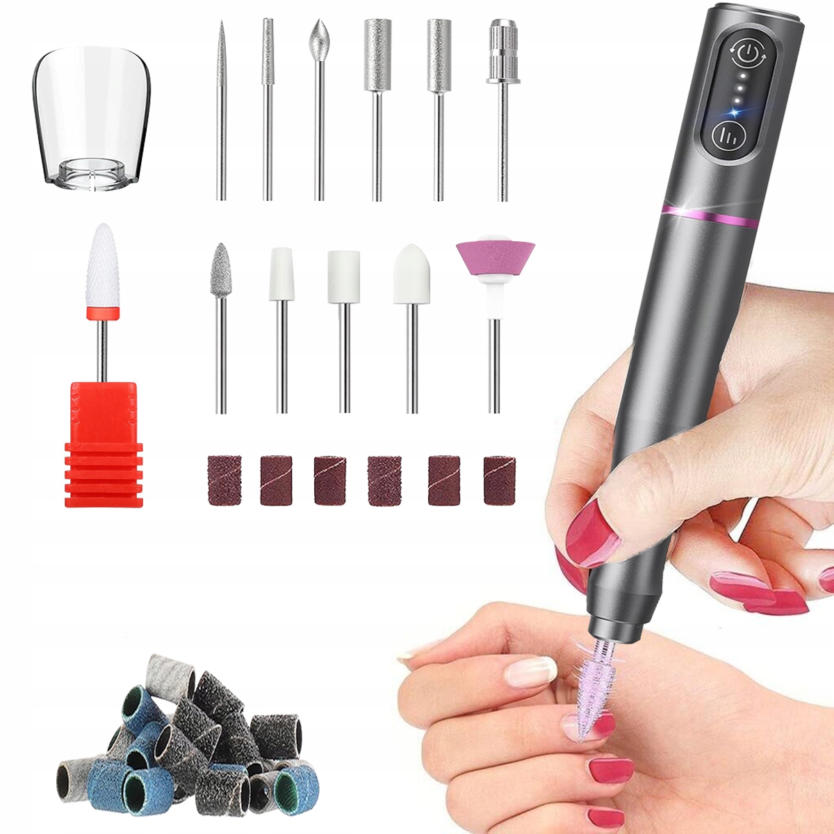 Акумуляторна машинка для стрижки нігтів YouKUKE для гелевих нігтів — це набір для оновлення з функціями 12 в 1, який складається з 1 насадки для кераміки, 6 шліфувальних насадок, 5 полірувальних насадок, 36 шліфувальних стрічок, 1 пилозахисний чохол, 1 USB-кабель для зарядки Type-C і 1 багатомовний посібник (німецькою, англійською тощо). Фреза для гелевих нігтів Neonail задовольнить усі ваші потреби щодо формування, полірування та видалення акрилових нігтів, мозолів, манікюру та педикюру. Пилозахисний чохол забезпечує зручний і чистий манікюр.