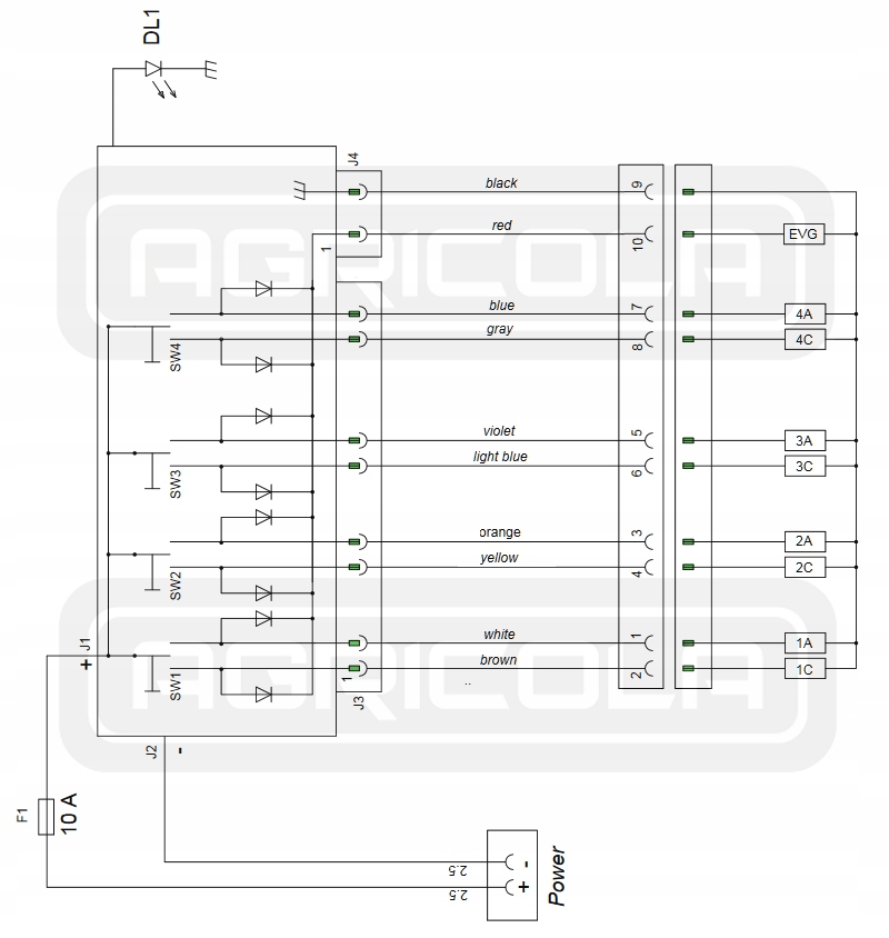 Панель дозволяє керувати чотирма секціями в електрично контрольованому гідравлічному розподільнику
