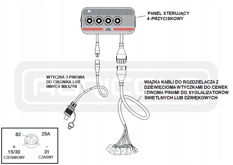 Включено дистриб'ютор, панель управління з набором кабелів та вилків. Системне масло: 0 - 80 л/хв.