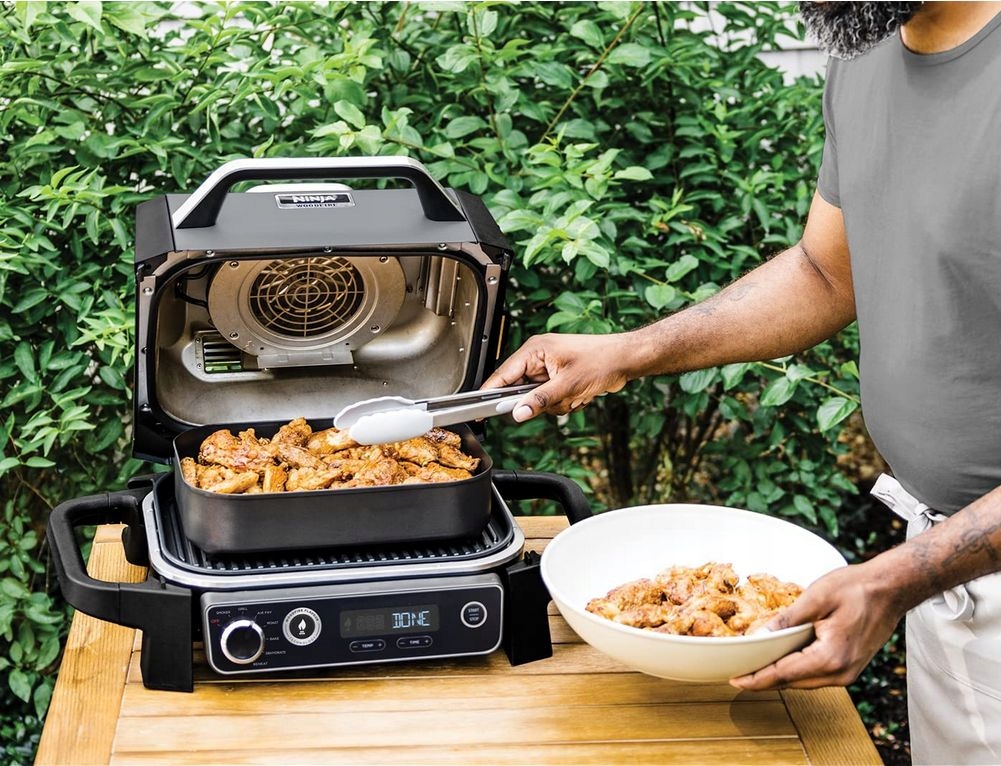 Відкрийте для себе новий спосіб приготування їжі на свіжому повітрі завдяки зовнішньому електричному грилю та фритюрниці ніндзя. Гриль, йдіть, обсмажте в повітрі і не тільки завдяки 100% натуральному, справжньому смаку духовки, що вибивають деревину.