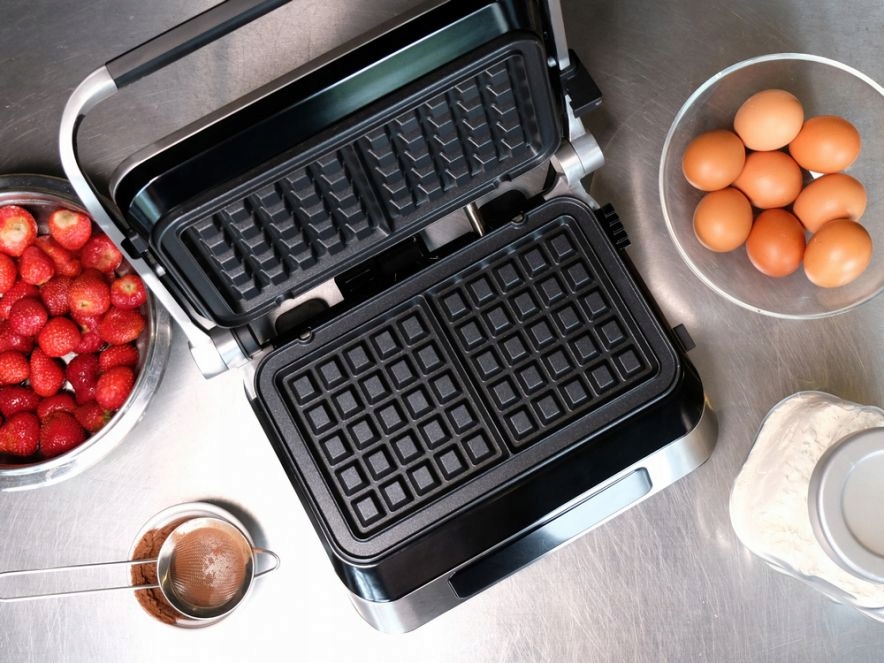 - 2 функції: контактний гриль: можливість смаження продуктів різної товщини; плоский гриль: велика поверхня для гриля, вафельниця: місце для 2 великих вафель