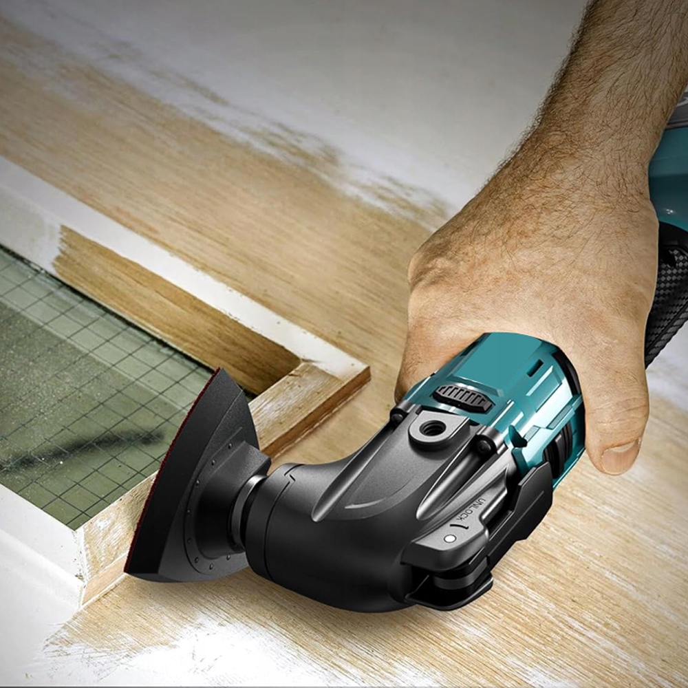 Наш коливальний електронний інструмент має міцну систему захисту із закріпленням інструменту та акумулятора, захист від перевантаження, захист від перегріву та захисту від дефіциту напруги. Матові пластикові ручки забезпечують захист від слизу, а м'яка ручка запобігає втомі під час тривалого використання.
