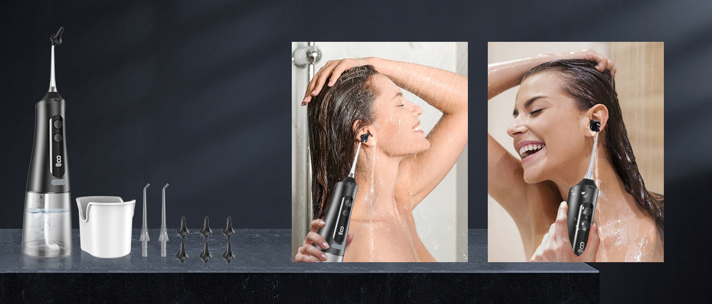 Електричний очищувач вух пропонує 9 режимів очищення, тиск води від 50 до 90 PSI, ви можете налаштувати його відповідно до потреб різних користувачів. Водонепроникна технологія IPX7 забезпечує довговічність і безпечне використання в душі. Крім того, функція пам’яті гарантує, що наступного разу, коли ви її використаєте, вона негайно запам’ятає та вибере останній режим, який ви використовували.