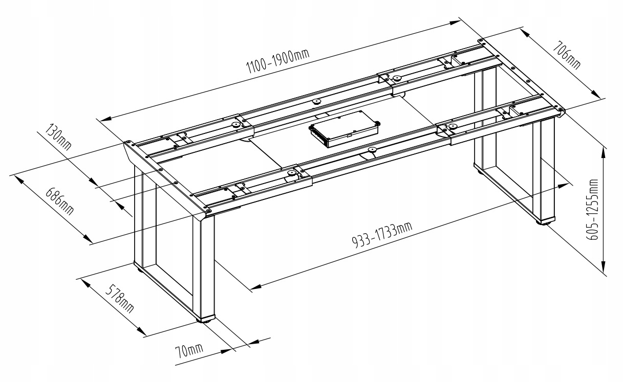 - Діапазон регулювання 605- 1255 мм