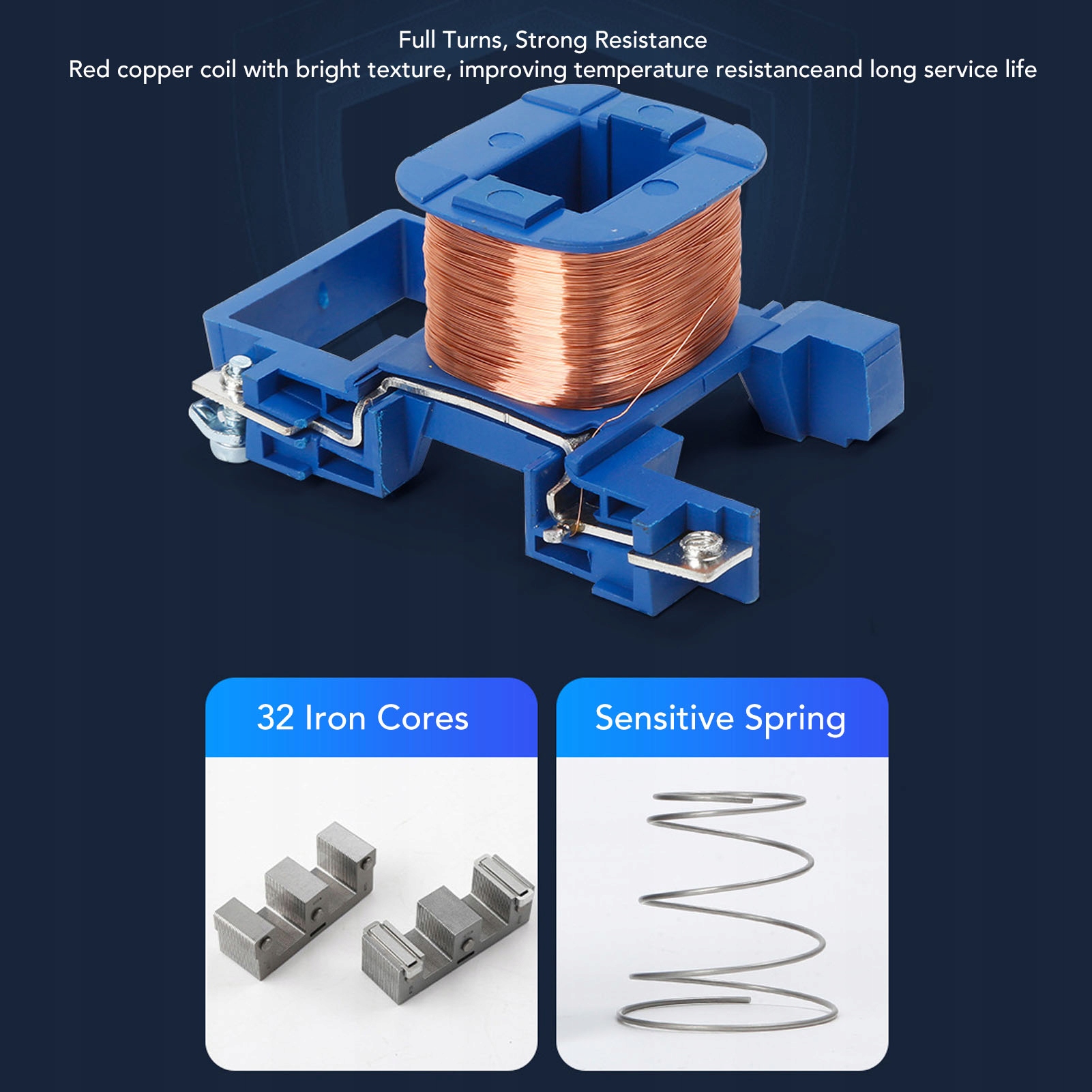 1,КОТУШКА З МІДНИМ СЕРДЕЧНИКОМ: контактор змінного струму використовує котушку з високим опором, яка створює магнітне поле під час протікання струму, дозволяючи електричну установку та контроль навантаження.