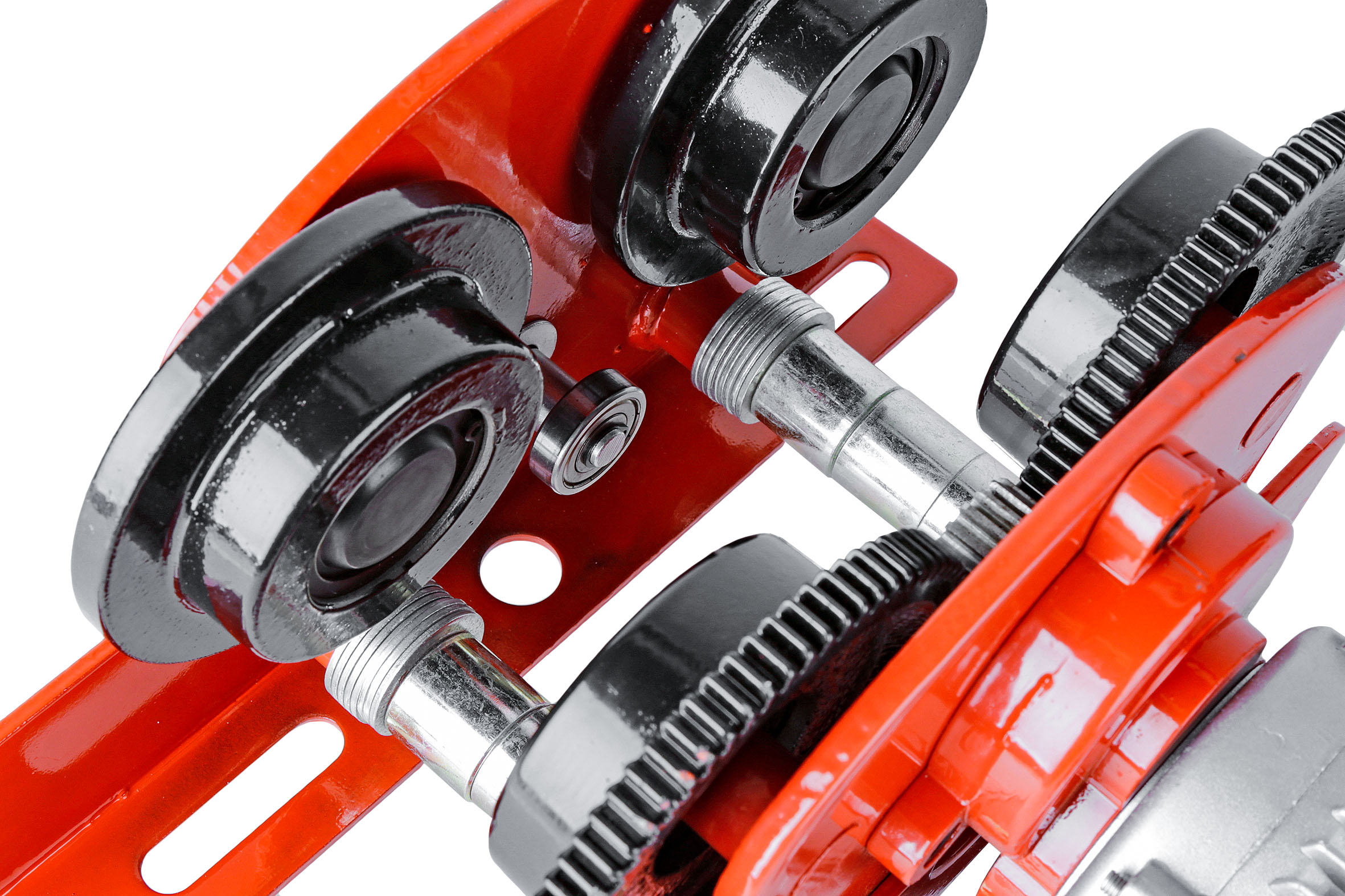 Все зроблено з надзвичайно міцної сталі, покритої захисним покриттям. Візок легко адаптується до будь-якого типу лебідки завдяки відповідній конструкції та продуманій системі кріплення. Регулювання коляски під профіль, по якому вона буде рухатися, також є гнучким і становить від 68 до 110 мм. Використання матеріалів найвищої якості дозволяє максимально навантажувати коляску 1000 кг.