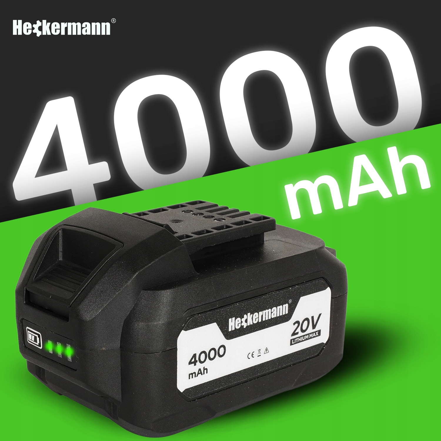 Мотоблок Heckermann живиться від літій-іонної батареї 20 В ємністю 4000 мАг, яка забезпечує оптимальний час роботи без необхідності заряджати кожні кілька хвилин.