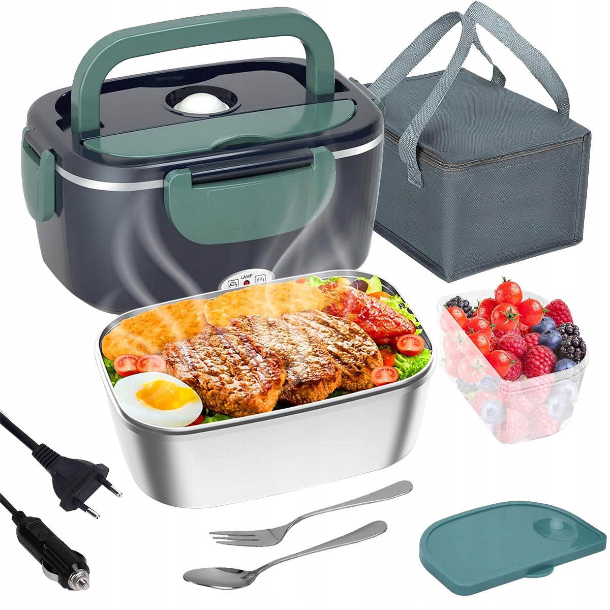 ЕЛЕКТРИЧНИЙ ЛАНЧ-БОКС 1,5 Л, 3 В 1, 60 ВТ, НЕРЖАВІЮЧА СТАЛЬ 304, ЕЛЕКТРИЧНИЙ ЛАНЧ-БОКС/ВАНТАЖІВКА, ДОМАШНИЙ КЕМПІНГ, ПОРТАТИВНИЙ ЛАНЧ-БОКС, ПІДІГРІВАНИЙ СНІДАНОК ДРУГИЙ СНІДАНОК З ВИЛКОЮ + ЛОЖКОЮ + ТЕРМОСУМКОЮ
