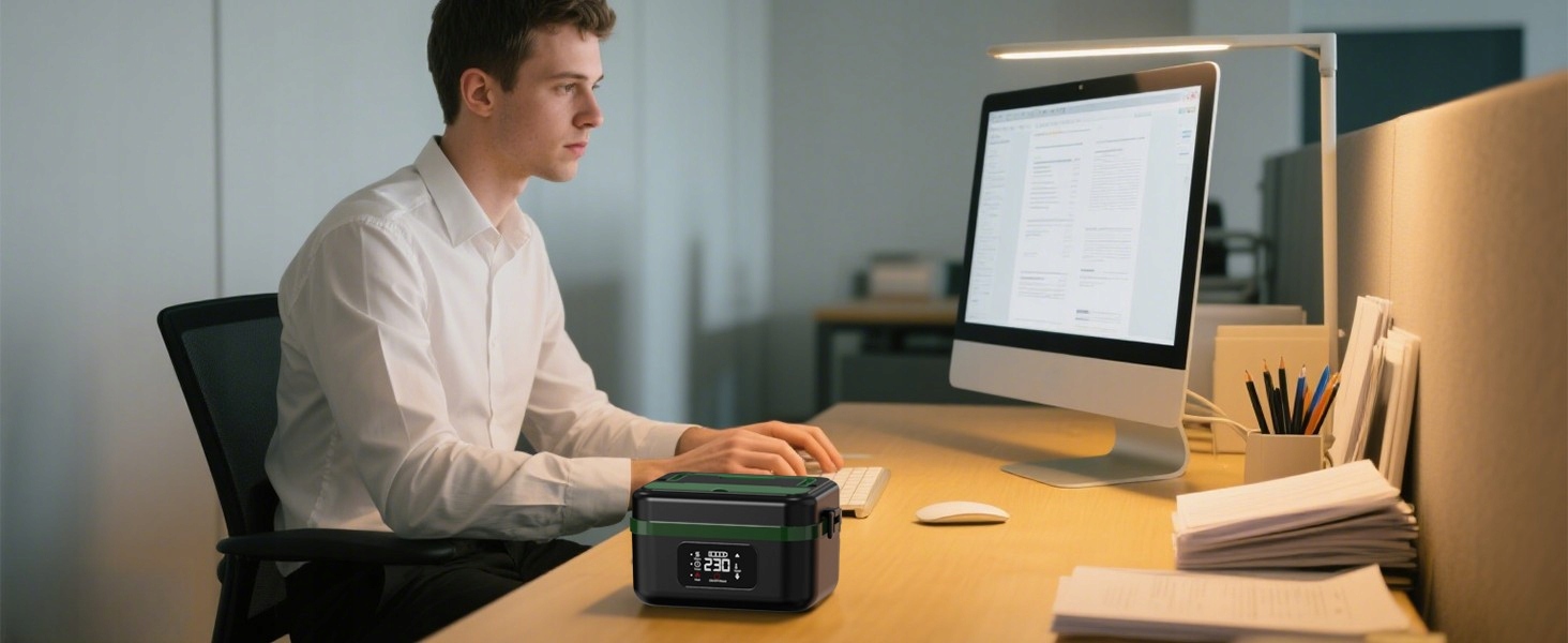 ♨ Оснащений потужним акумулятором ємністю 16 000 мАг, він має час автономної роботи до 90 хвилин і час роботи 50 хвилин. Функція швидкого нагріву потужністю 60 Вт нагріває їжу за 40-60 хвилин.