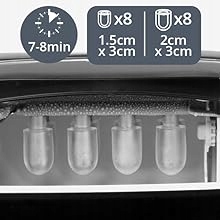 З ним ви можете насолоджуватися льодом миттєво. Він виробляє 8 кубиків льоду за 6-8 хвилин, і кожен з них важить понад 70 г. Крім того, електронна панель управління дозволяє налаштувати процес під ваші потреби. Коли контейнер для льоду заповниться або в ньому закінчиться вода, ви отримаєте миттєвий відгук.