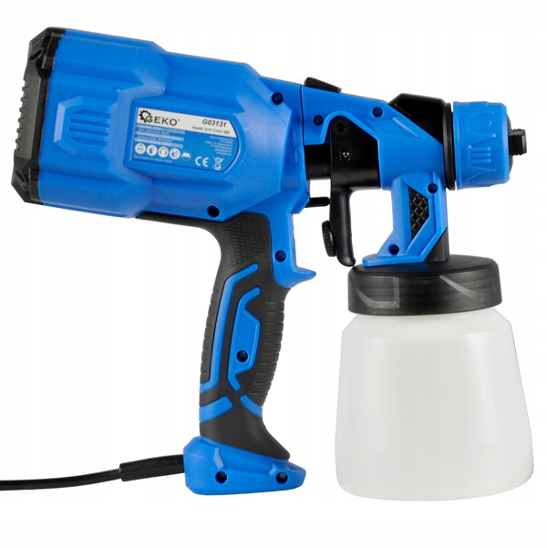 Пистолет живиться від мережі 230В, завдяки вбудованому компресору пістолет GEKO не потребує додаткової подачі повітря у вигляді компресора.