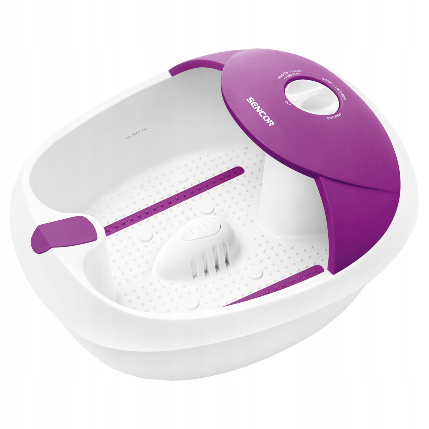 Бульбашковий масажер для ніг Sencor SFM 3721VT потужністю 90 Вт чудово подбає про втомлені ноги. Якщо ви любите лаванду, яка також має розслаблюючі властивості, вам неодмінно сподобається колір пристрою. Фіолетовий надає характер масажному апарату. Ви повинні спробувати кожен доступний рівень масажу. Використання масажера для ніг принесе сильне розслаблення всьому тілу. Крім того, кидання кубиків льоду у воду ефективно охолодить вас у сонячні дні.