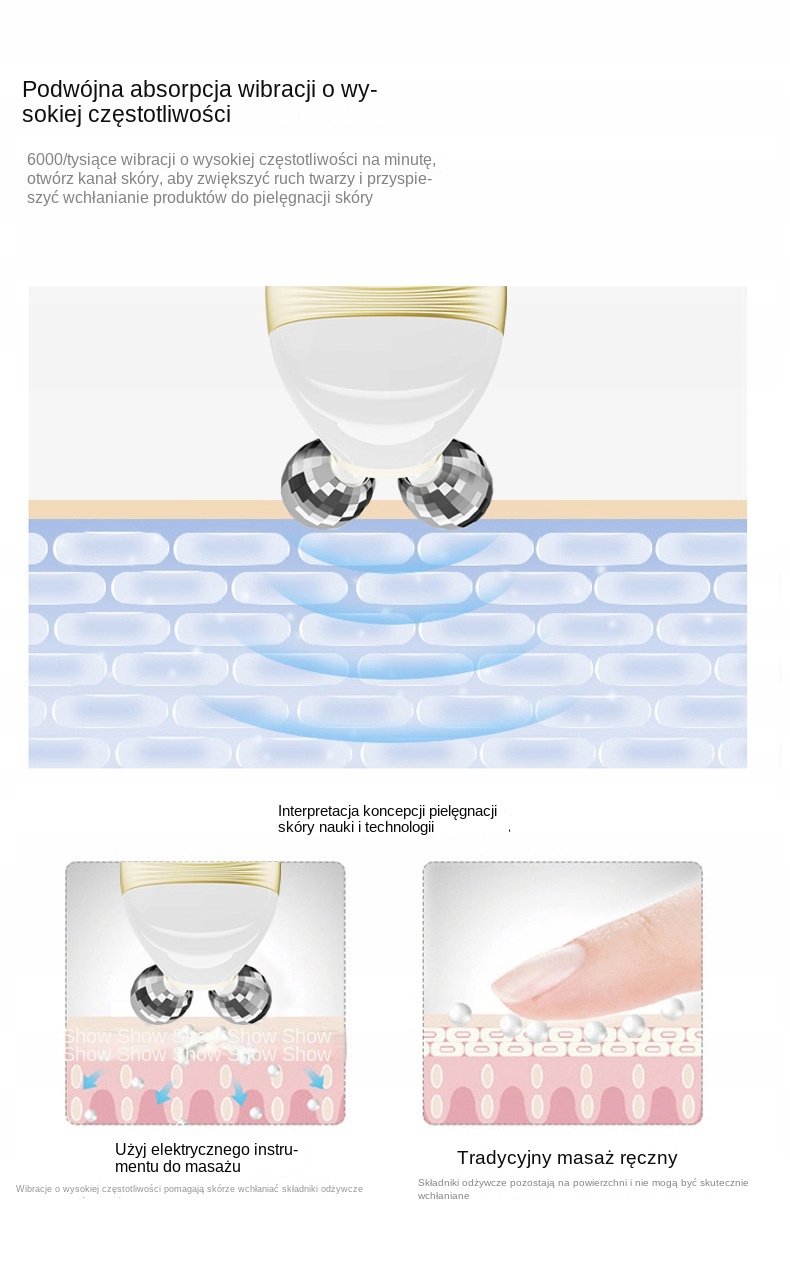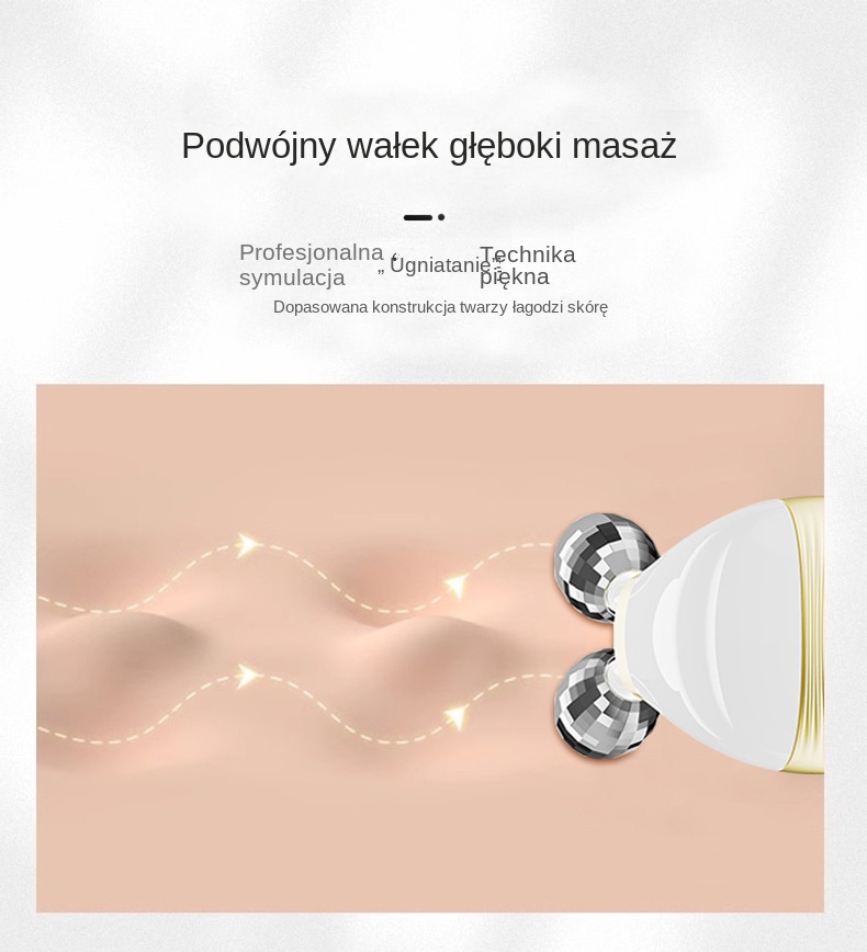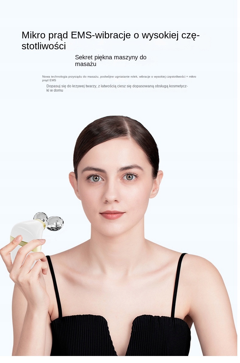 Електричний косметичний мікровалик, випромінює синє, червоне світло та вібрацію. Це роликовий масажний пристрій, який також може обертати обличчя, зазвичай покрите тоніком або лосьйоном, знизу вгору. Червоне світло омолоджує шкіру, синє світло має протизапальну дію, кожне світло та кожна вібрація мають 3 передачі, це дуже ніжна робота. Якщо ви відчуваєте особливу втому в офісі, ви також можете помасажувати плече. На шиї також можуть бути прожилки. Просто вимкніть капітана